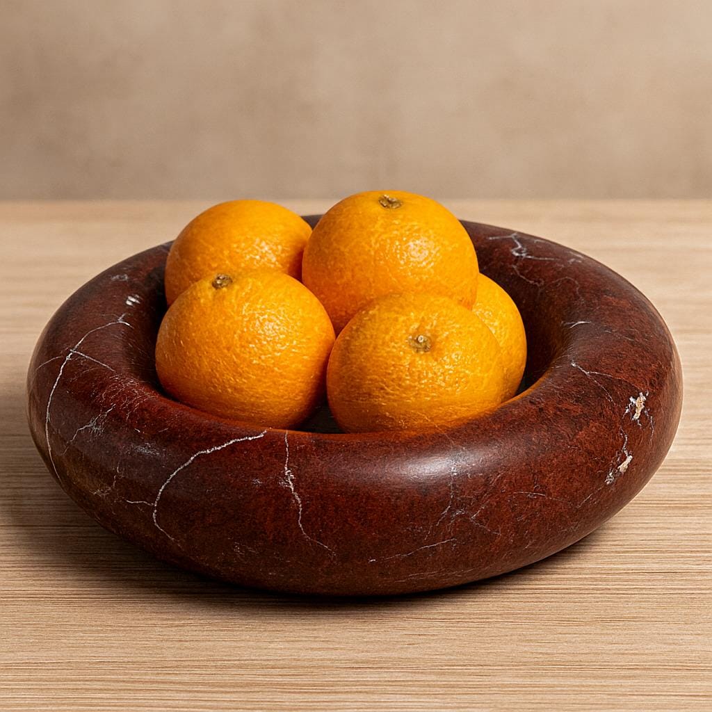 Elevate your interior décor with this stunning handcrafted bowl made from rich Rosso Levanto marble. Featuring deep red tones with natural white veining, this round sculptural piece showcases the timeless beauty of genuine marble. Its smooth, polished surface and elegant curved design make it a versatile décor accent — perfect as a centerpiece, fruit bowl, catchall tray, or simply as an artistic statement piece.
