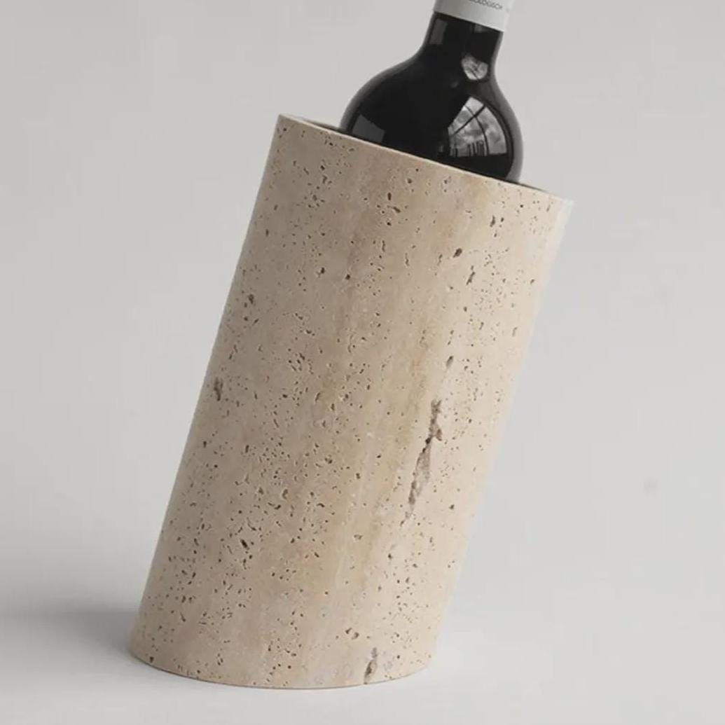 Designed for both functionality and elegance, the solid marble construction naturally maintains a cool temperature, keeping your wine, prosecco, or champagne chilled for longer. Its minimalist cylindrical silhouette and slight angle create a sculptural centerpiece — perfect for luxury home bars, dining tables, or event displays.