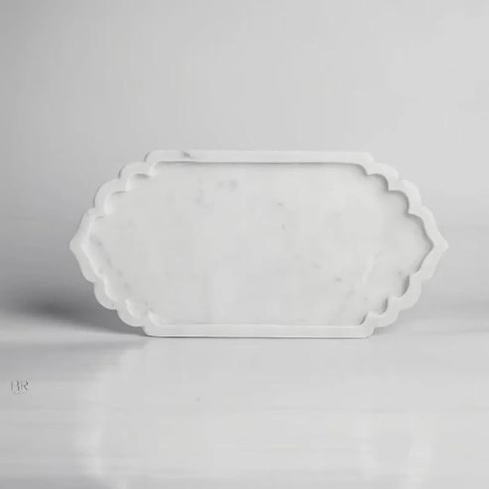 Bring timeless sophistication and artisan craftsmanship to your home with this handcrafted white marble decorative tray by GraniteGrace.