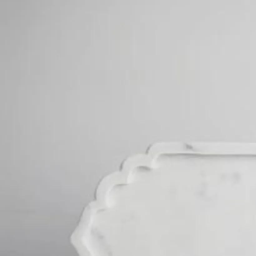 Each piece is meticulously carved from solid natural marble, showcasing soft veining and a luxurious, polished finish. The scalloped edge design adds an elegant sculptural touch, making it a perfect accent for both modern and classic interiors.