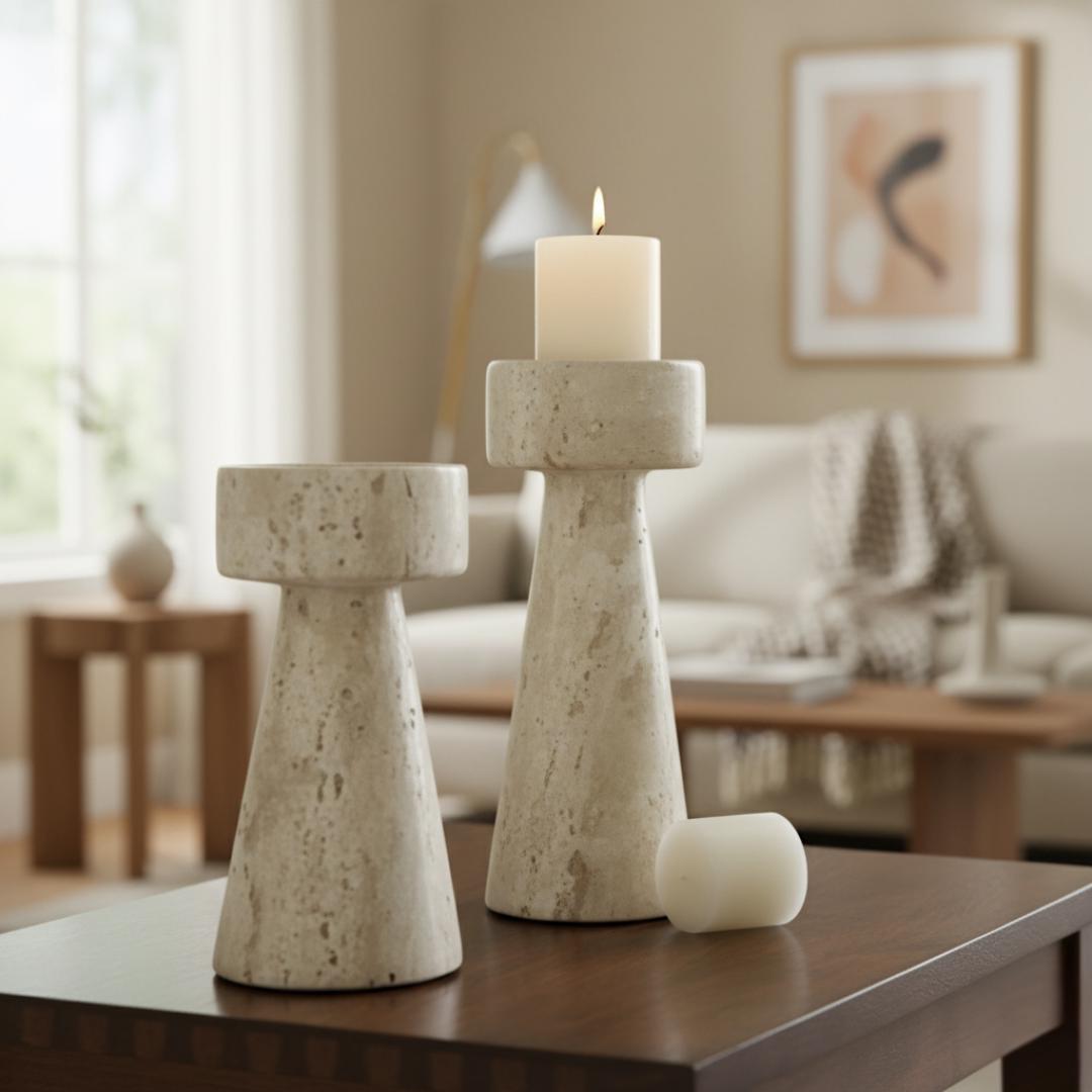 Designed with a minimalist sculptural form, these candle holders elevate any room — from modern living spaces to spa-inspired interiors. Perfect for dining tables, mantels, or meditation corners, they create a serene, luxurious atmosphere when paired with soft candlelight.