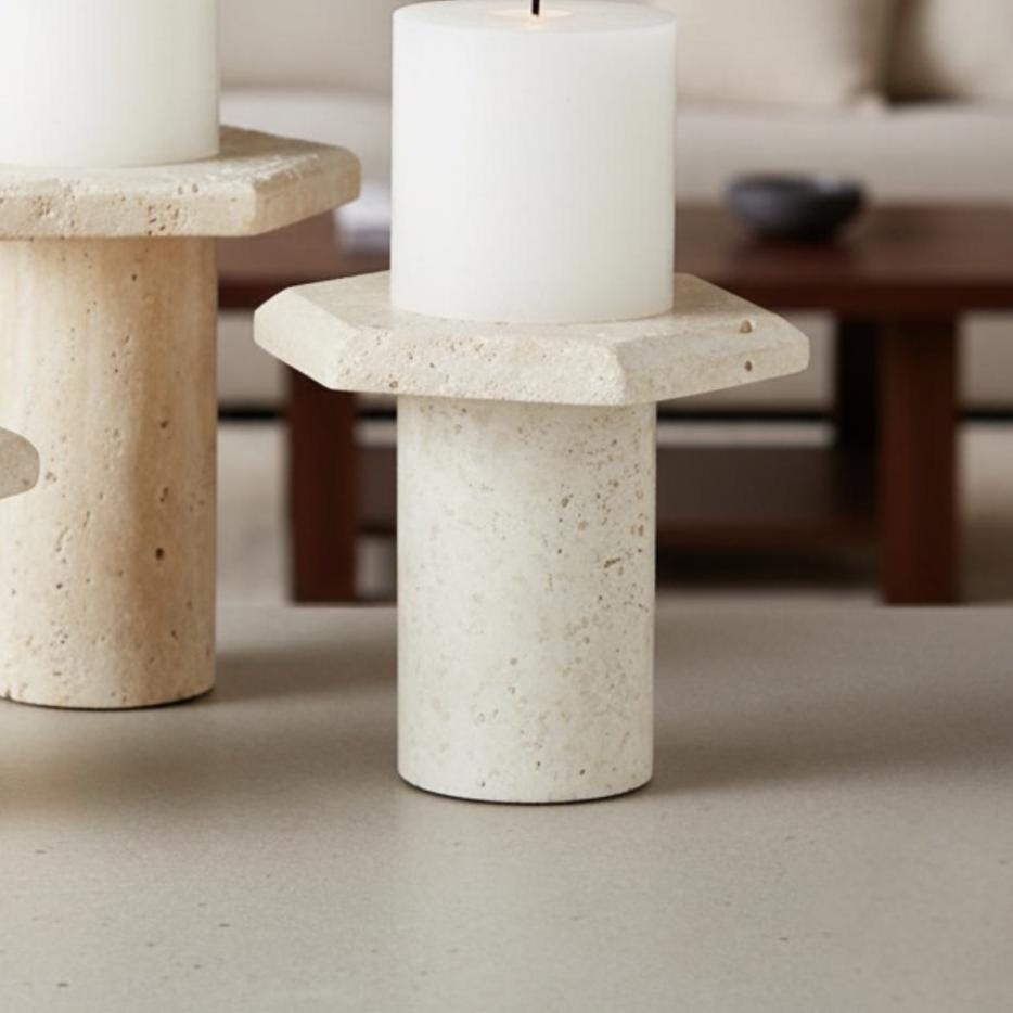 Highlights Ships from a small business in India Materials: Travertine Handcrafted Beige Stone Candle Holders – Modern Minimalist