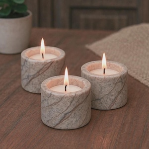 Illuminate your space with elegance using this handcrafted set of 4 marble tealight candle holders. Designed in delicate flower shapes, each holder is carved from natural stone, adding a touch of timeless luxury to your home decor. Perfect for spa settings, festive occasions, romantic dinners, or simply enhancing your living room ambiance. The warm glow of candles paired with the smooth marble finish creates a serene and inviting atmosphere.