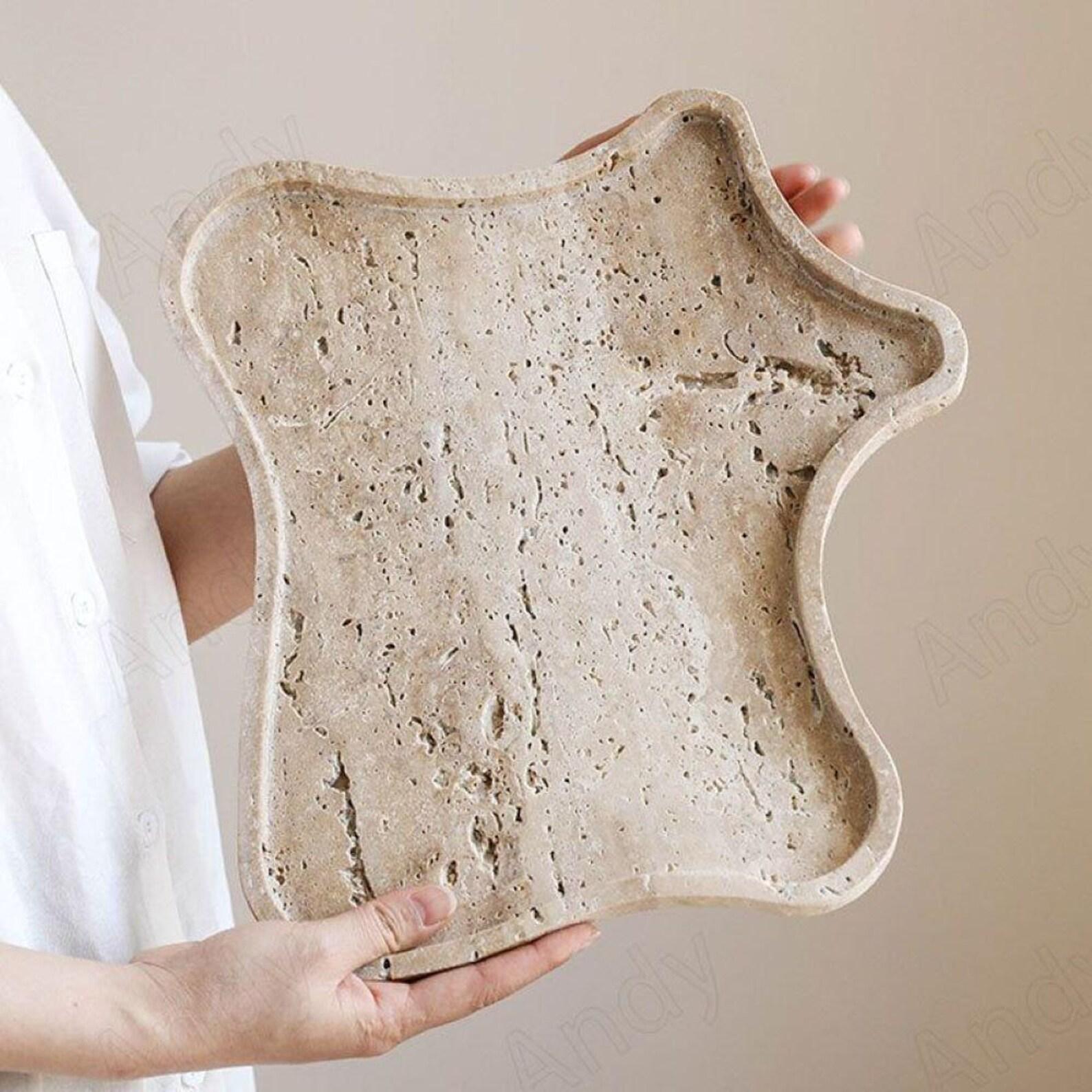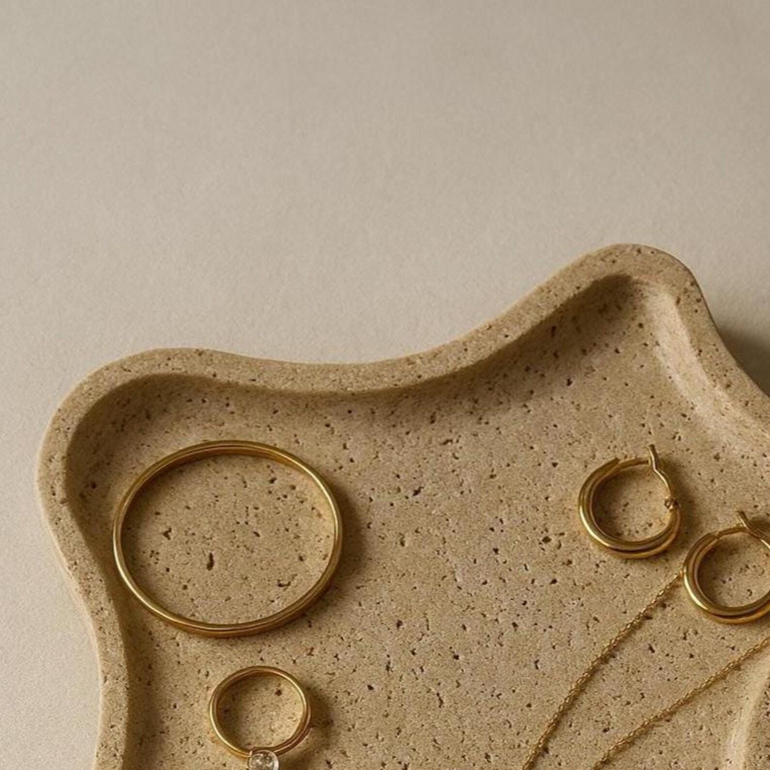 Each piece is carefully shaped from genuine natural travertine, featuring unique patterns and organic edges that make every tray one of a kind. The smooth surface beautifully complements gold or silver jewelry, while the subtle earthy tones create a serene, minimalist atmosphere.