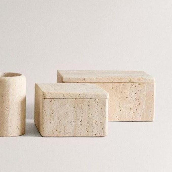 handcrafted from 100% natural stone. Each piece is sculpted and polished by skilled artisans to preserve the stone’s organic texture, warm beige tones, and unique natural veining, ensuring that no two sets are ever exactly alike.