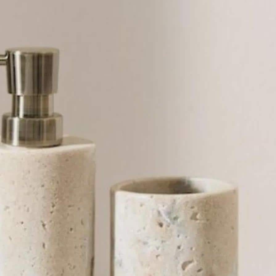 Bring natural elegance and timeless style to your bathroom with this handmade travertine stone set, featuring a sleek soap dispenser and matching tumbler. Each piece is expertly crafted from 100% natural travertine, known for its warm beige tones, unique veining, and organic texture — making every set beautifully one of a kind.