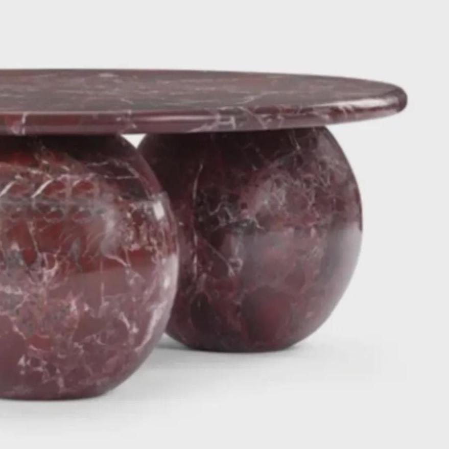 📝 Product Description Introducing the Trois Rosso – a masterfully handcrafted round marble coffee table designed to make a bold artistic statement. This luxurious piece features a smooth burgundy marble top supported by three solid sphere legs, exuding elegance, balance, and sophistication. The rich red hues with natural veining make it a timeless addition to modern, minimalist, or classic interiors.