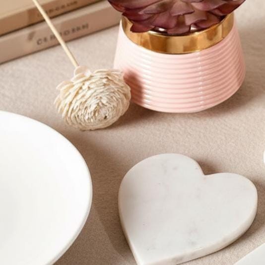 Thickness: 0.4 Inches Bring a touch of romance and elegance to your table with this handcrafted heart-shaped white marble coaster and plate set. Designed with love and precision, each piece features a smooth, polished finish that highlights the natural beauty and subtle veining of genuine marble.
