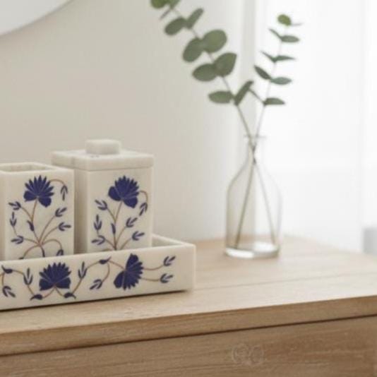 Placement: Ensure the items placed on it (like the succulent pot or soap dispenser) are dry underneath to prevent moisture buildup, which can lead to mold or mineral stains over time, especially if the tray has an unglazed bottom.