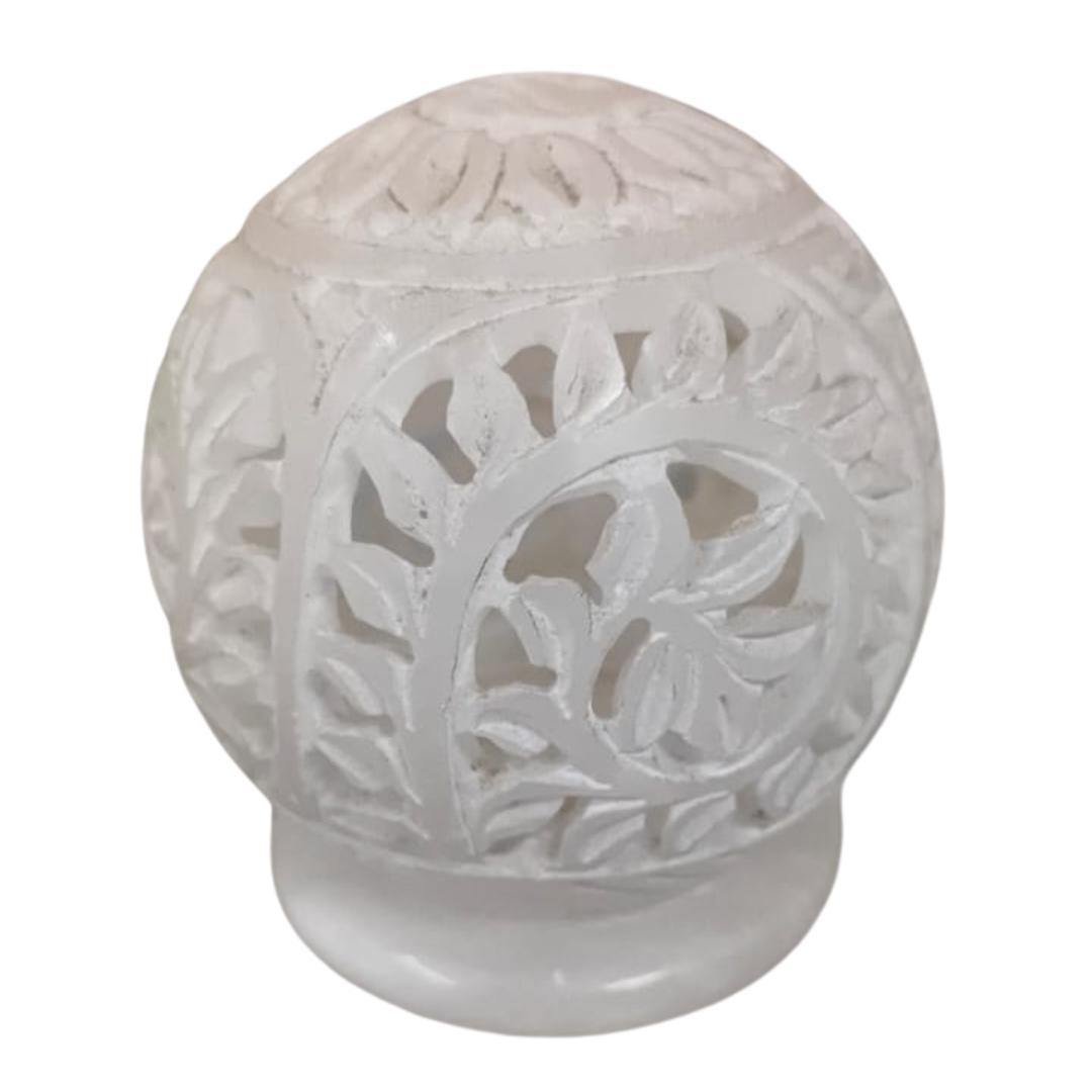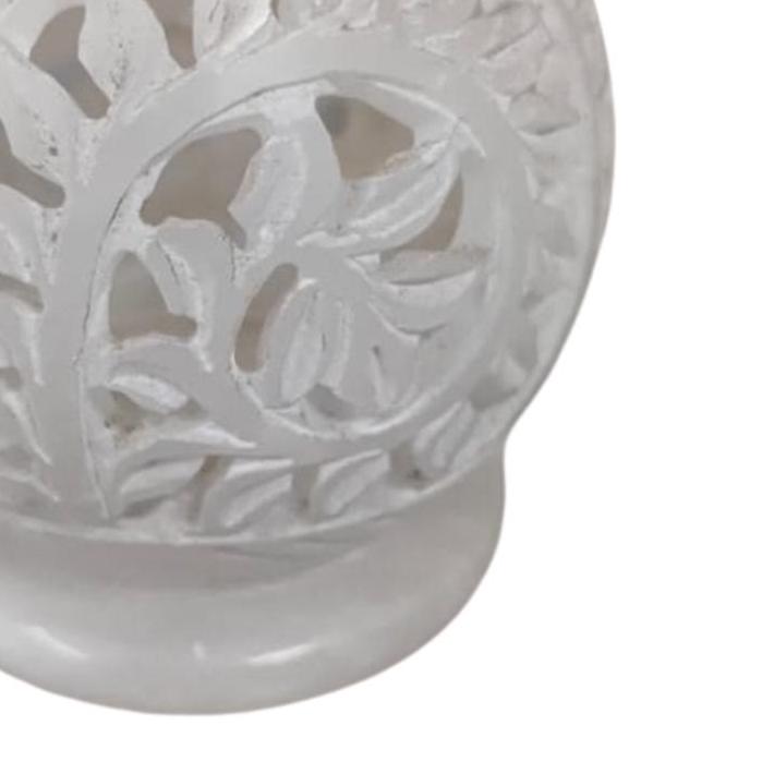 Hand-Carved White Marble Tealight Holder: Floral Candle Home Decor by GraniteGrace Elevate your home's ambiance with the exquisite artistry of our Hand-Carved White Marble Tealight Holder. From GraniteGrace, this luxurious piece brings a touch of timeless elegance and a soothing glow to any space. Crafted from premium white marble, this 3-inch spherical Stone Ball is meticulously hand-carved with delicate floral patterns, creating a stunning interplay of light and shadow when illuminated. Watch as the soft flicker of a tealight candle dances through the intricate cutouts, casting beautiful designs that transform your room into a sanctuary of calm. More than just a T-Light Lamp, this Carving CandleHolder is a statement of Luxury life and a symbol of refined taste. Its classic design and high-quality Italian Marble Lamp material ensure a luxury feel that complements any decor style, from modern minimalist to classic ornate. Perfect as candle decor for your living room, bedroom, bathroom, or even an outdoor patio. It's an ideal marble tealight accent for special occasions, creating decorative lights for gatherings, or simply adding warmth to your everyday routine. Looking for the perfect Christmas gift or a thoughtful present? This tealight holder is a memorable choice that will be cherished for years to come. Experience the unparalleled beauty and serene glow that only genuine hand-carved marble can offer. Bring home this unique t-light holder and let your space shine with sophisticated charm.