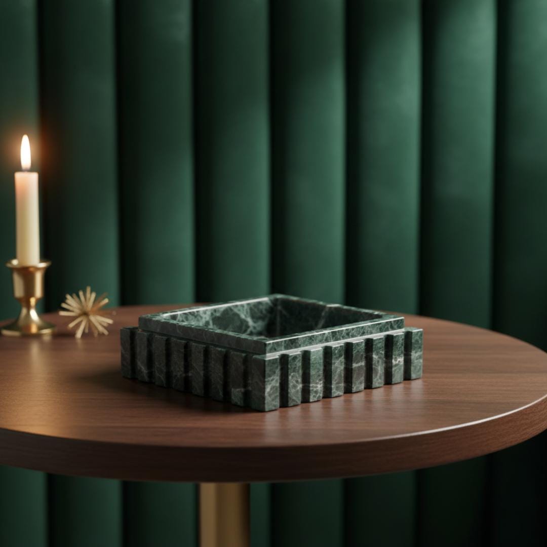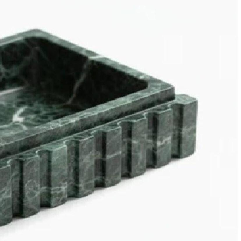 Highlights Ships from a small business in India Materials: Marble Width: 6 inches Height: 2 inches Depth: 6 inches Elevate your bathroom décor with this exquisite handcrafted soap dish, sculpted from rich green marble. Its striking fluted base and smooth, polished interior combine modern geometry with timeless natural stone elegance. The deep rectangular design keeps your soap neatly in place, while the bold veining of the marble adds a luxurious, organic touch to any vanity or countertop. Perfect for contemporary, minimalist, and premium home styling. Each piece is unique, showcasing the natural beauty and texture of real marble.