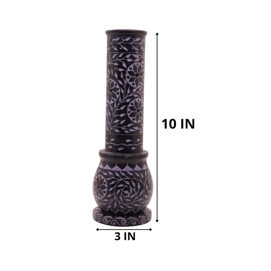 This incense stick and candle holder is handmade from soapstone. It has beautiful Jaali (openwork) designs, giving it a unique and elegant look.