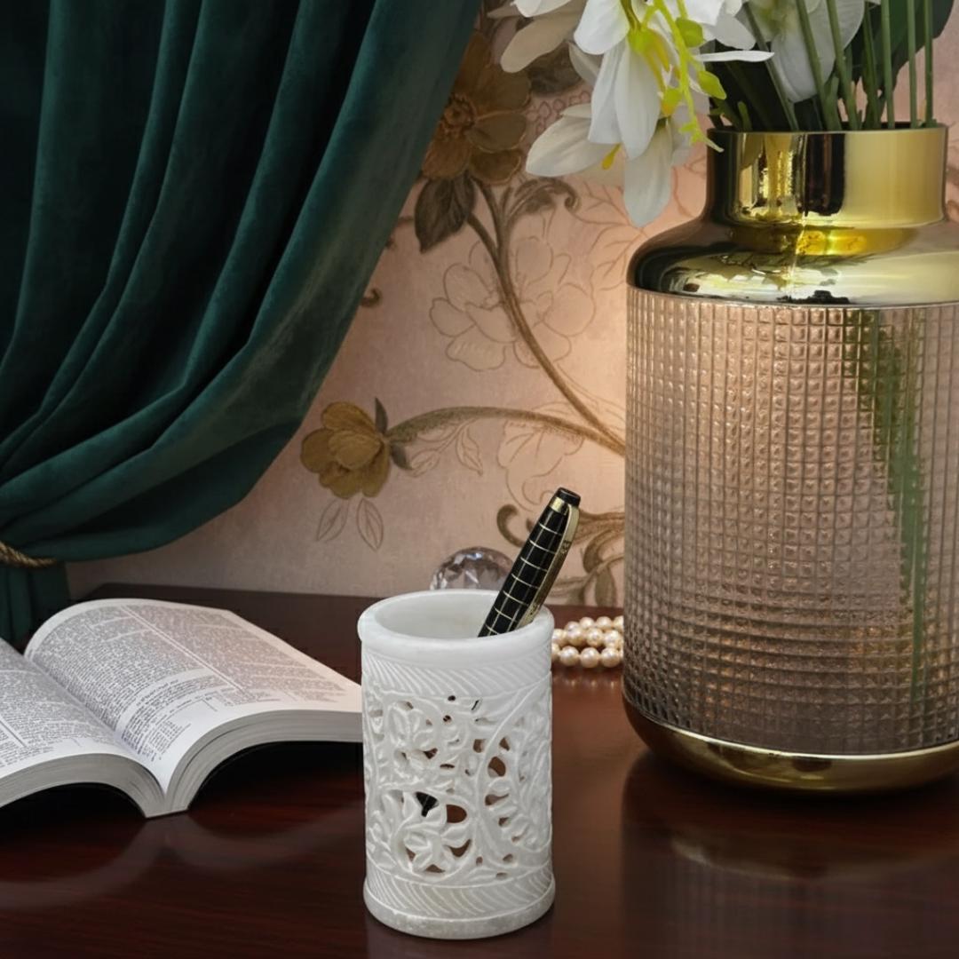This white composite “marble” pen holder is elegant, compact, and handmade. It keeps your desk clean and stylish—great for offices, study tables, or reception areas.
