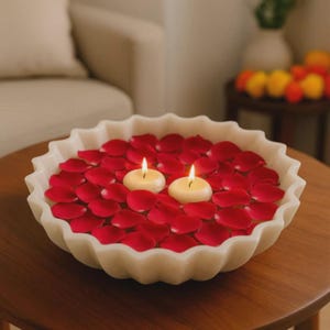 A beautifully made lotus-petal marble plate that looks elegant and works well as a centrepiece or decorative item. It comes in three sizes—6", 9", and 12"—and is crafted from 100% premium white marble.