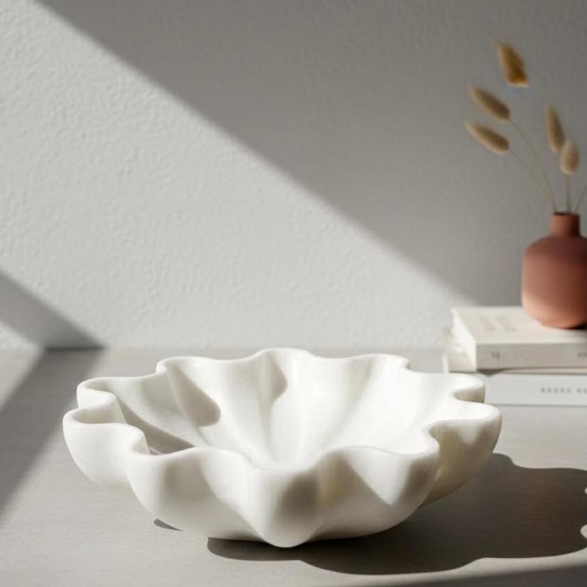 Elegant Design: The soft, ruffled or scalloped edge gives a refined, sculptural aesthetic — making it more than just a bowl, but a statement décor element.