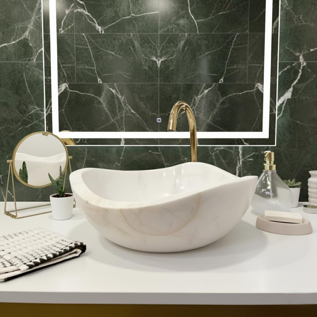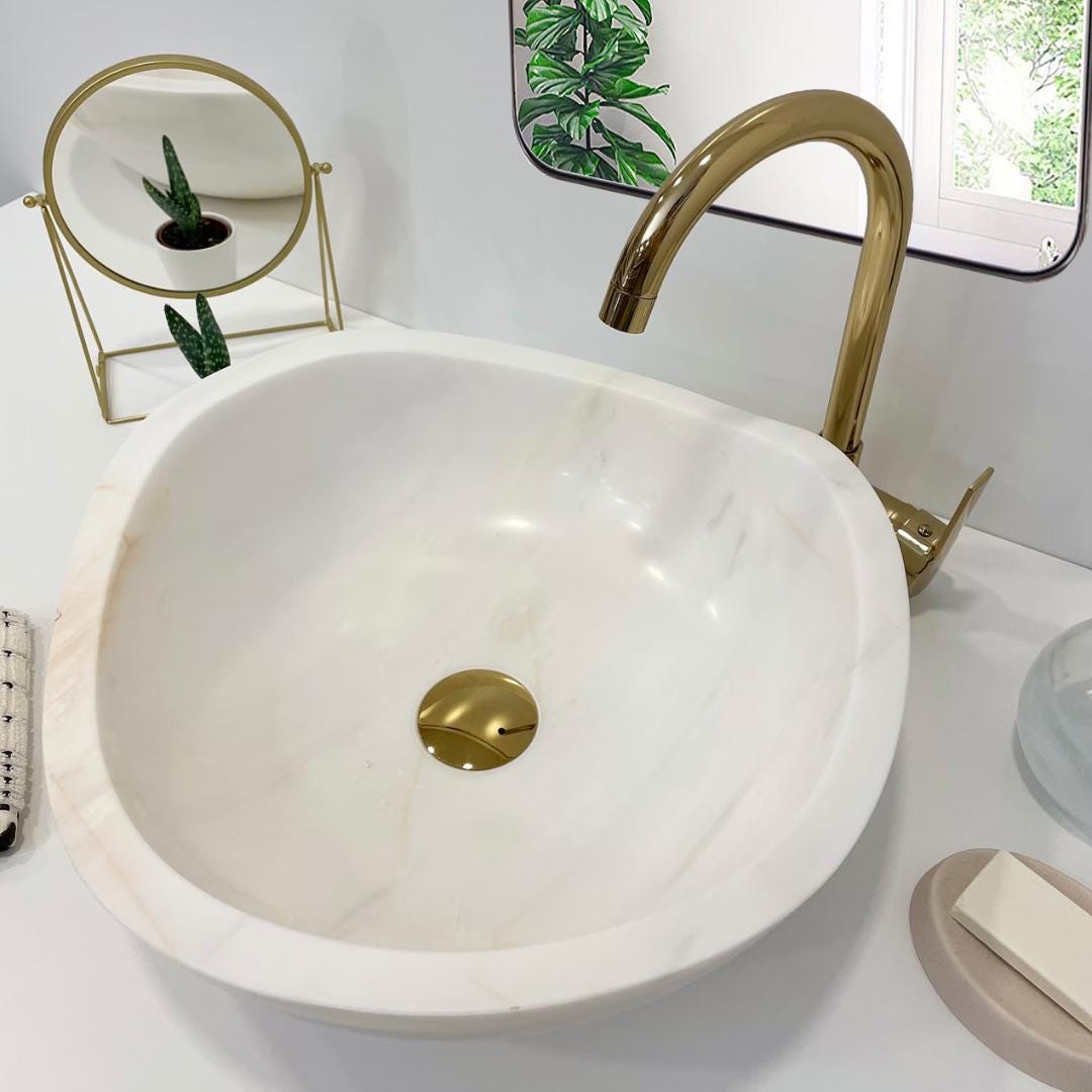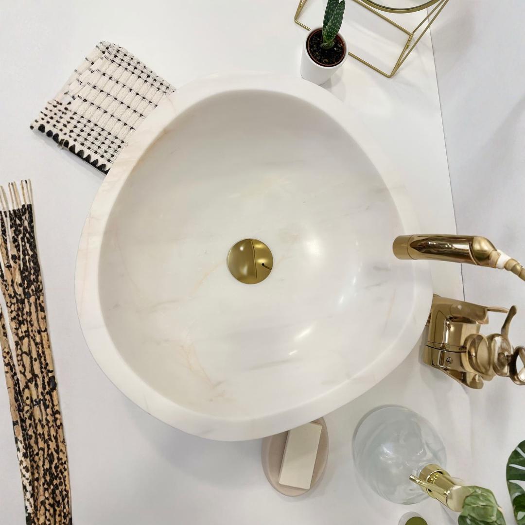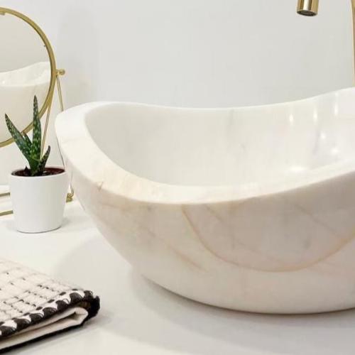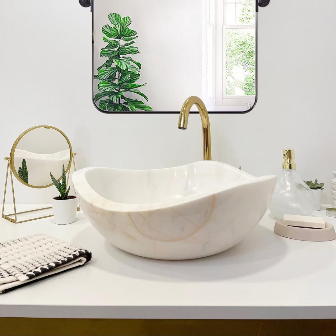 Add a touch of elegance to your bathroom with this natural stone sink, carefully handcrafted from premium white marble. Each sink is made by skilled artisans, making every piece truly unique with its own natural veining and texture.