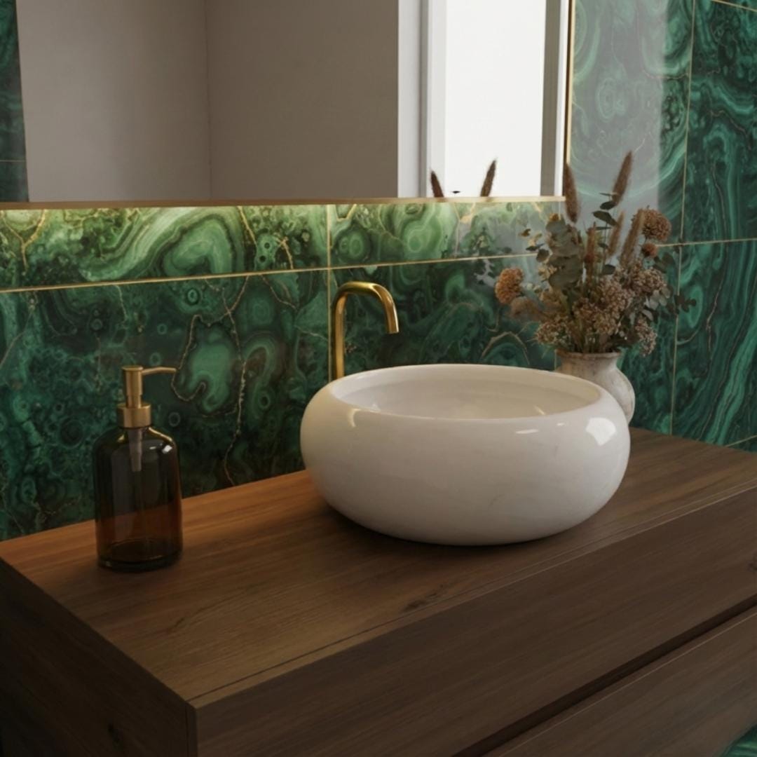 Use: Bathroom vanity, wash basin, or statement decor piece