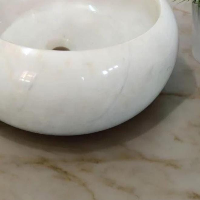 White Marble Vessel Sink – Handmade Round Natural Stone Bathroom Basin