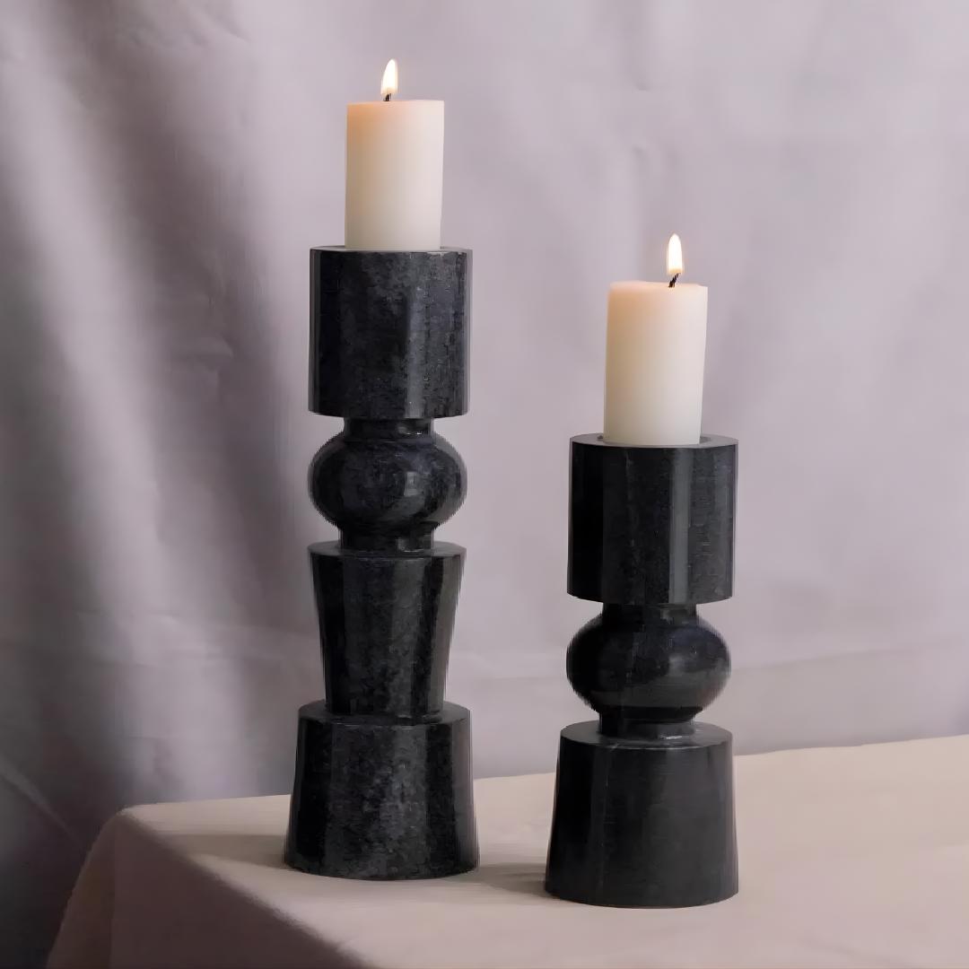 Handcrafted Black Marble Geometric Candle Holders | Luxury Sculptural Home Decor