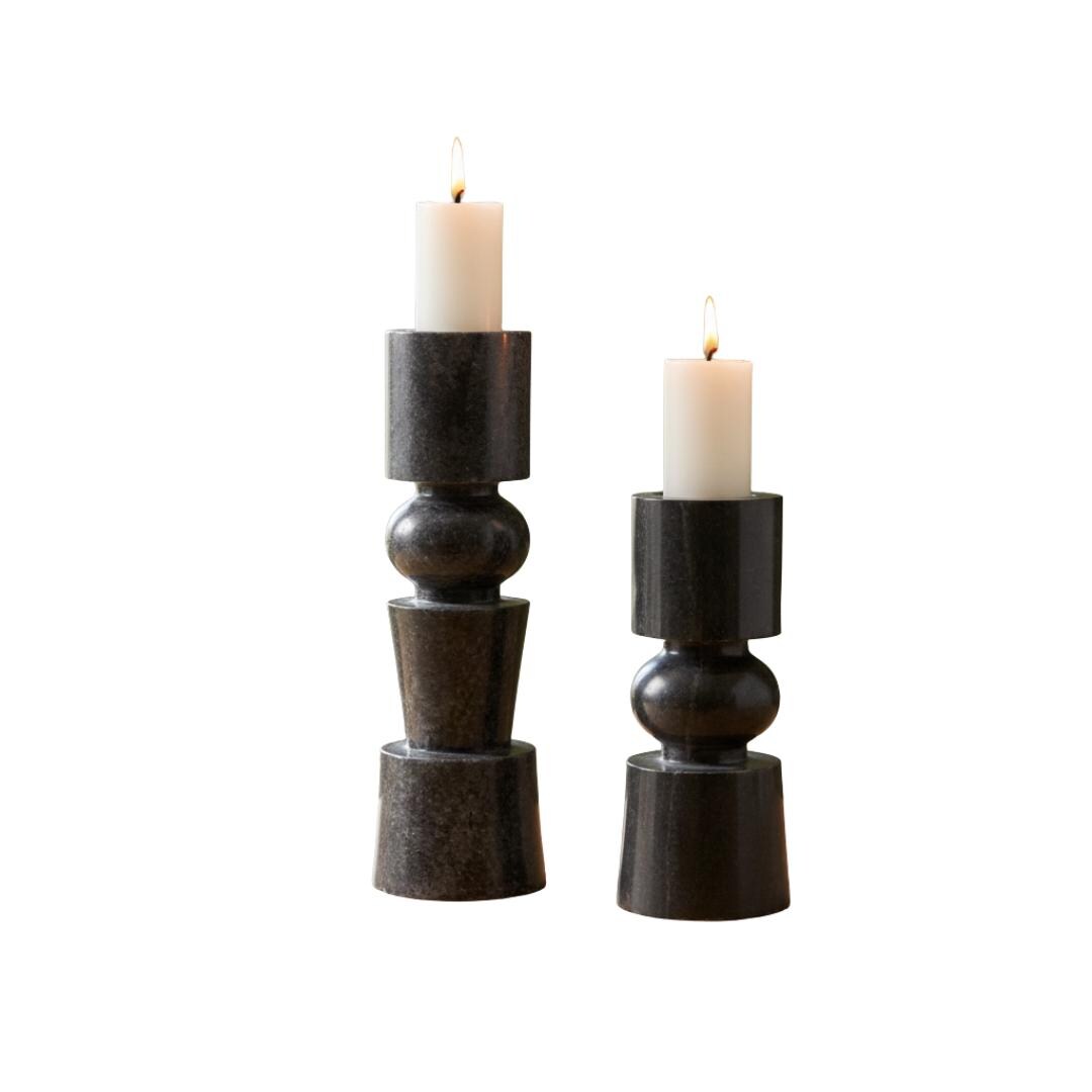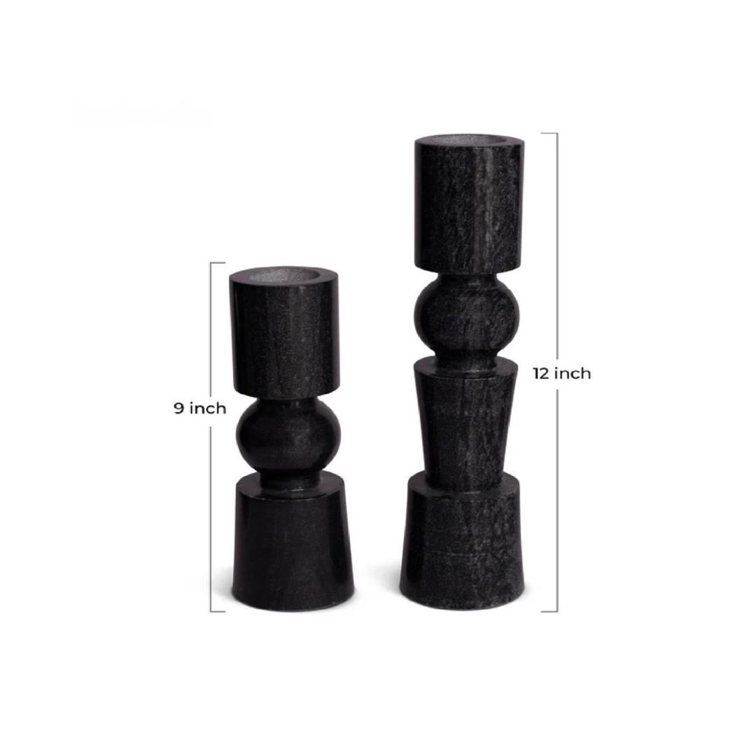 Each geometric marble candle holder is carved from natural black marble, showcasing subtle stone variations and a refined hand-polished finish. When lit, the warm glow of candles contrasts beautifully with the deep, glossy stone, adding drama, elegance, and sophistication to any setting.