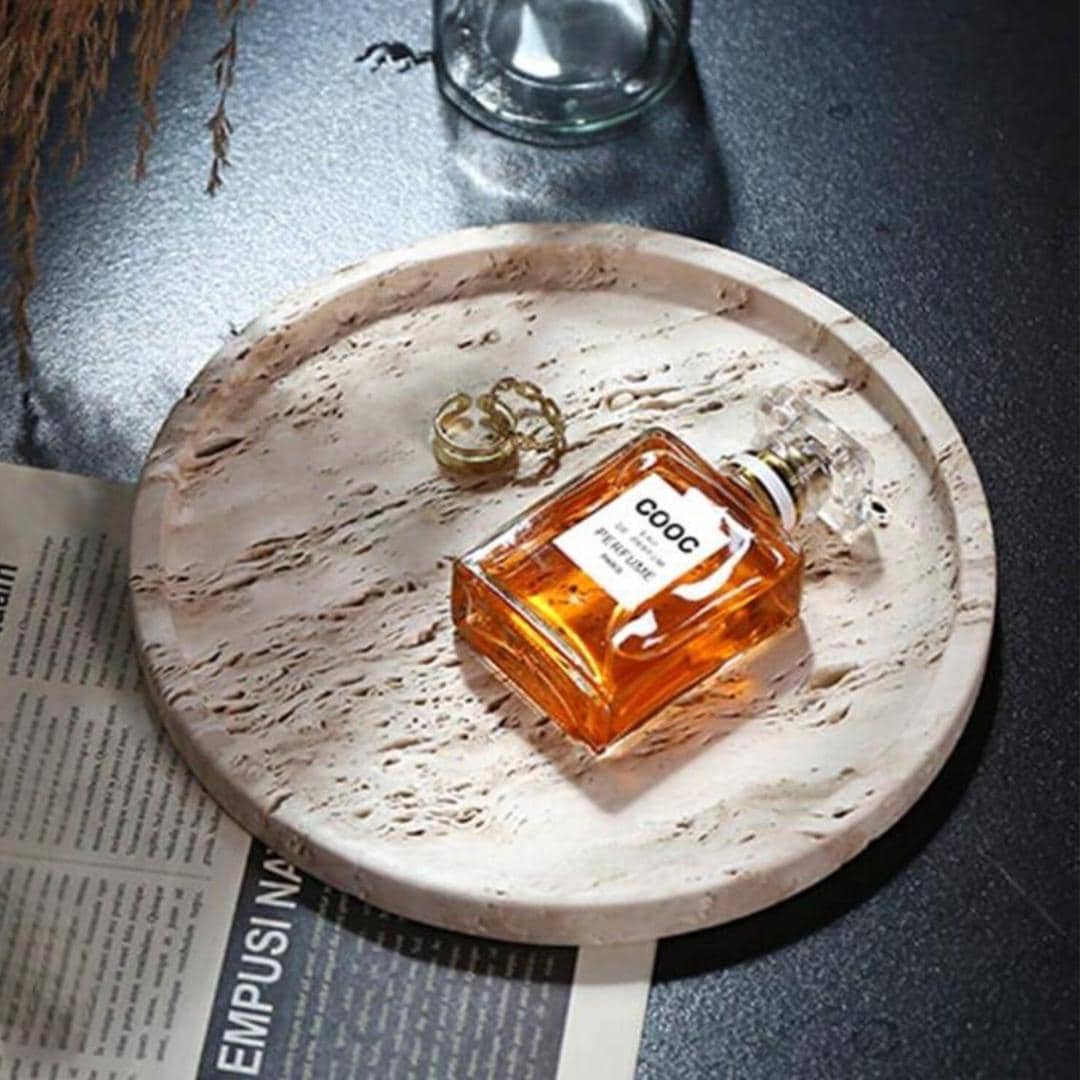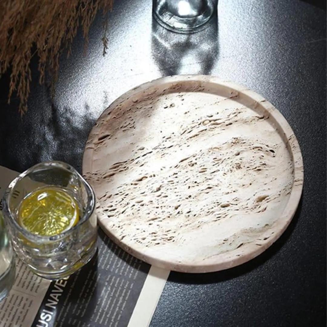 Handcrafted Round Travertine-Style Tray | Natural Stone Organizer & Minimalist Decor