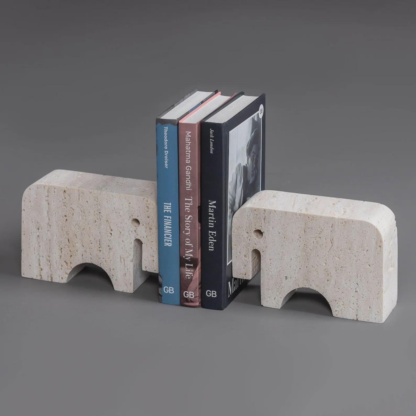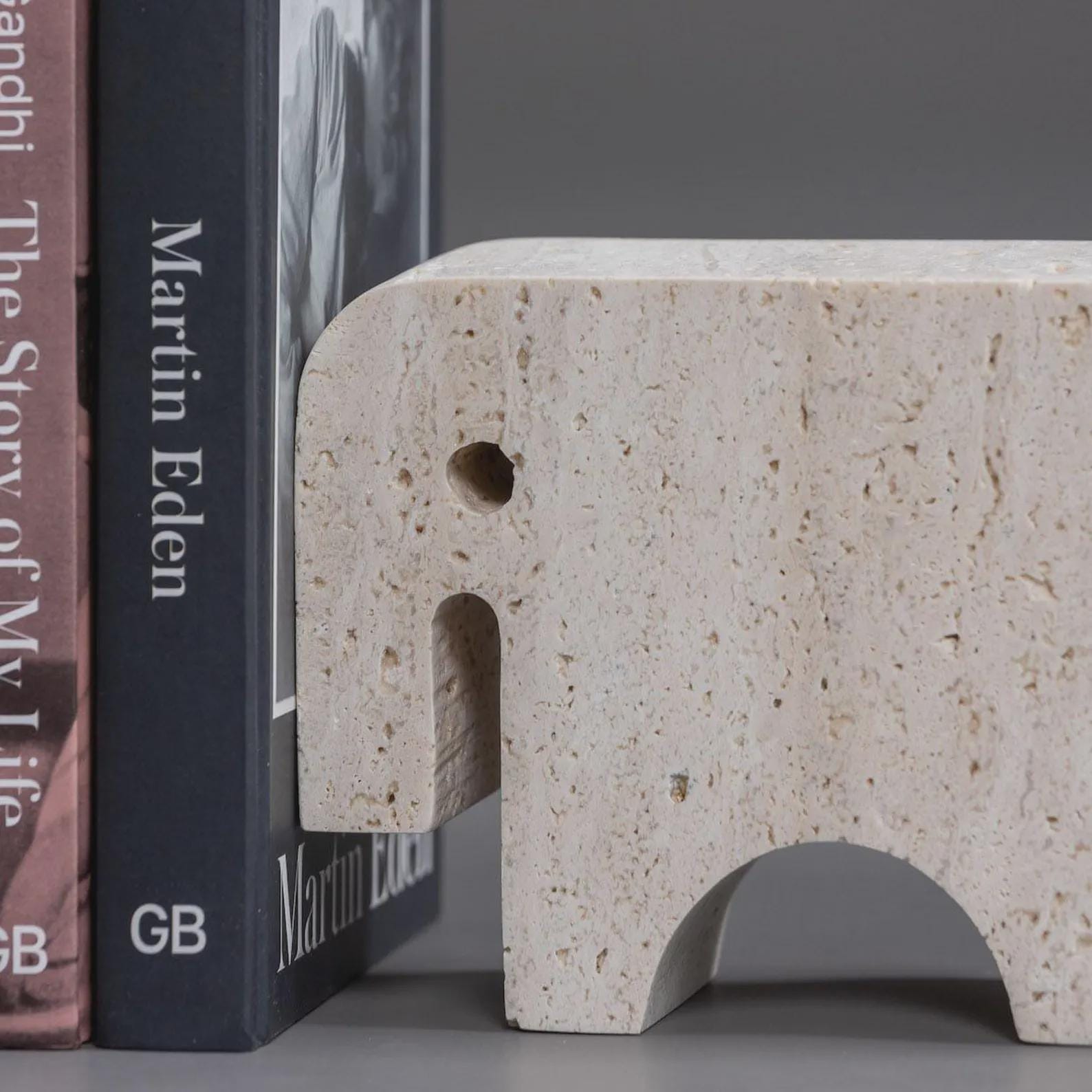 Bring charm, warmth, and personality to your shelves with this Elephant Stone Bookend Set, handcrafted from natural travertine stone. Designed with clean minimalist lines and a modern elephant silhouette, these stone animal bookends provide sturdy book support while doubling as a delightful decor accent for your home or office.