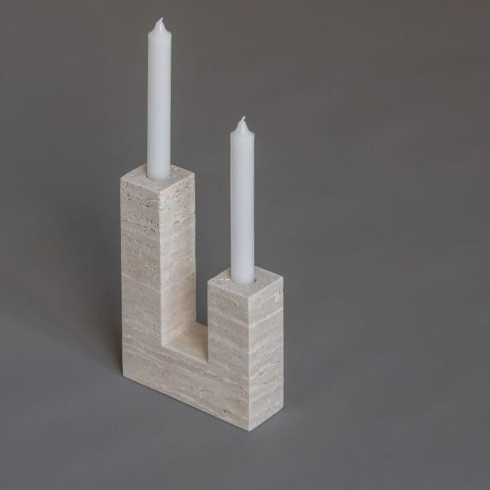 L-Shaped Natural Stone Candle Holder – Handcrafted Travertine Minimalist Decor
