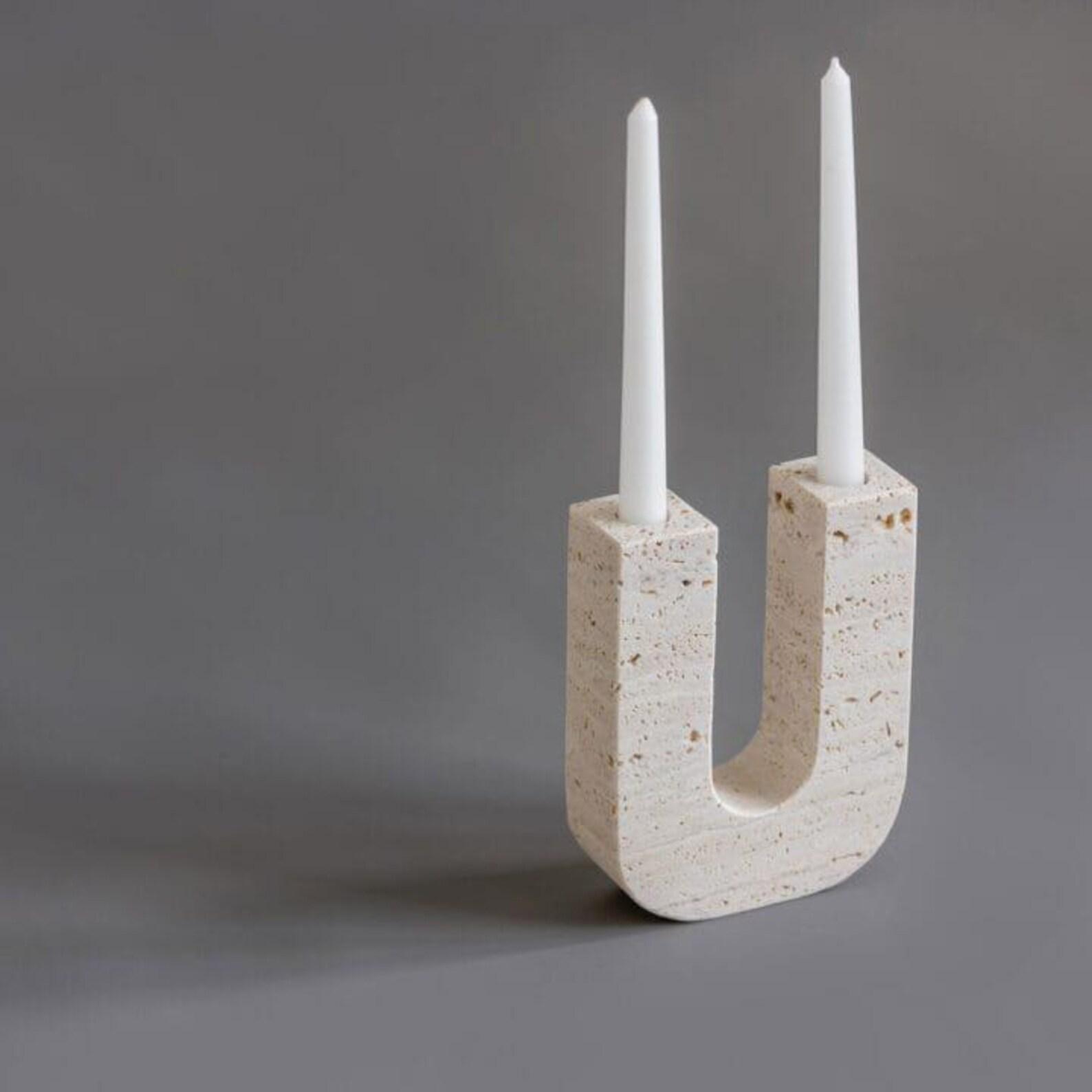 Bring refined sculptural beauty into your home with this U-shaped candle holder, handcrafted from premium natural travertine stone. Its smooth curves, clean lines, and organic texture make it a striking minimalist décor piece for modern, Scandinavian, Japandi, and contemporary interiors.