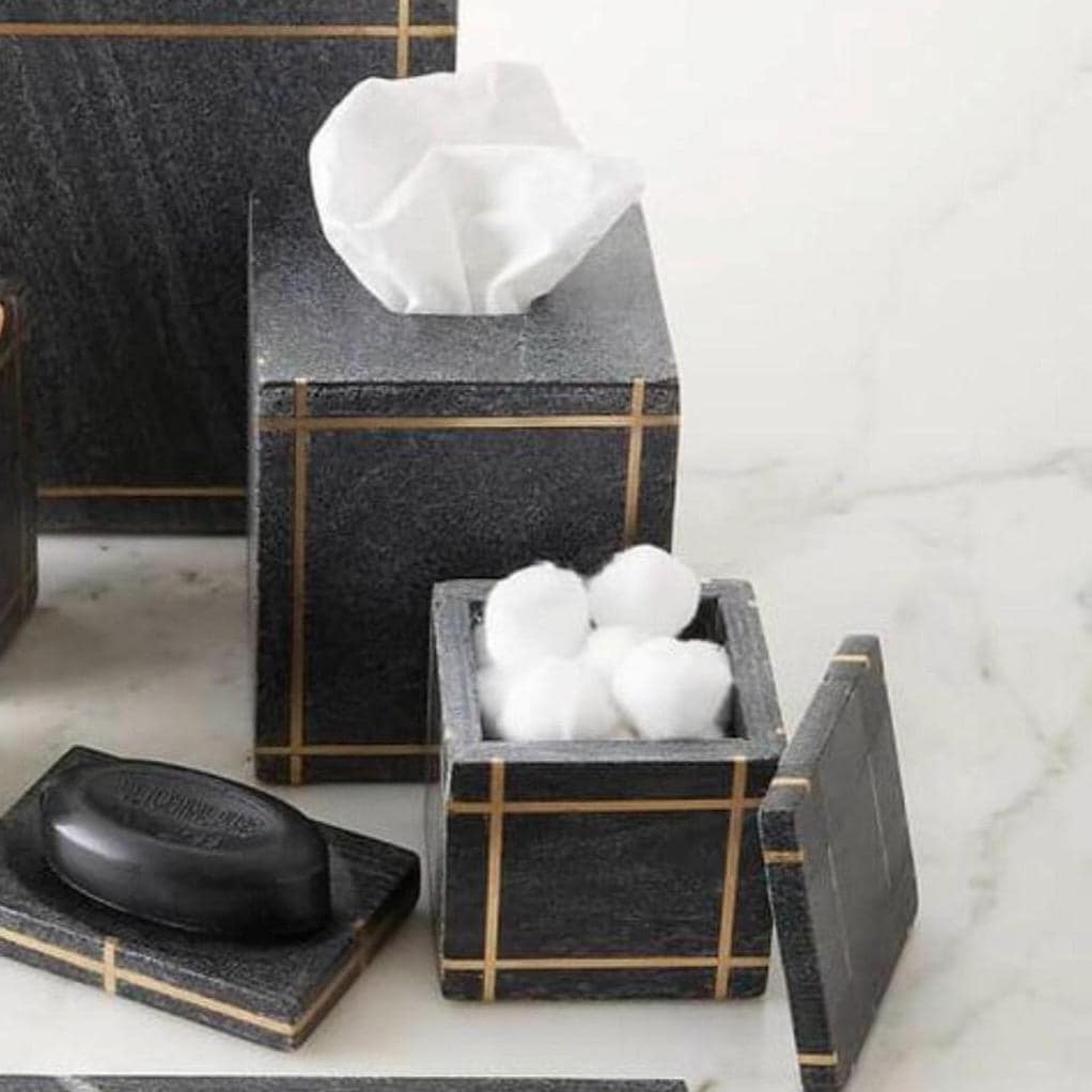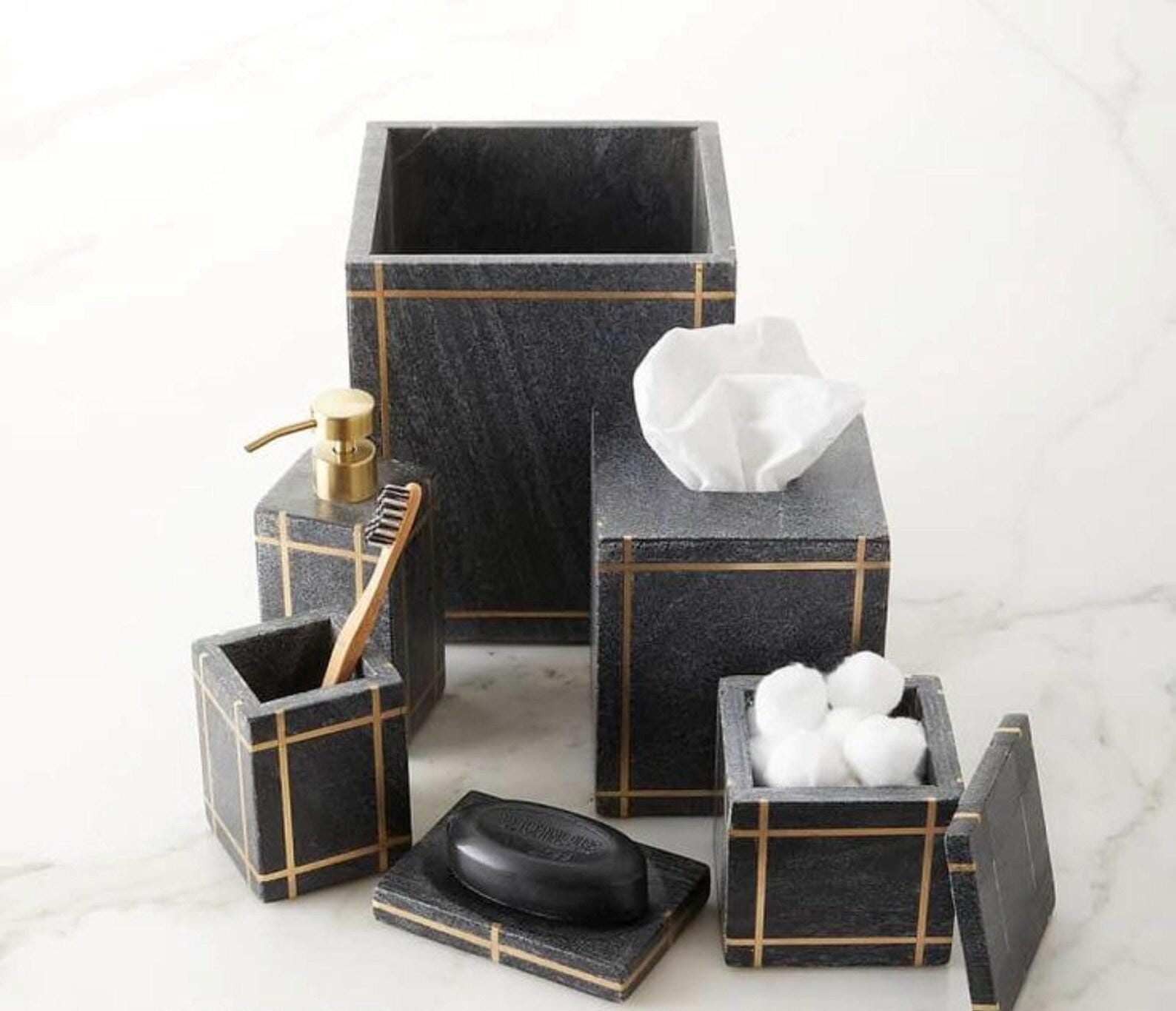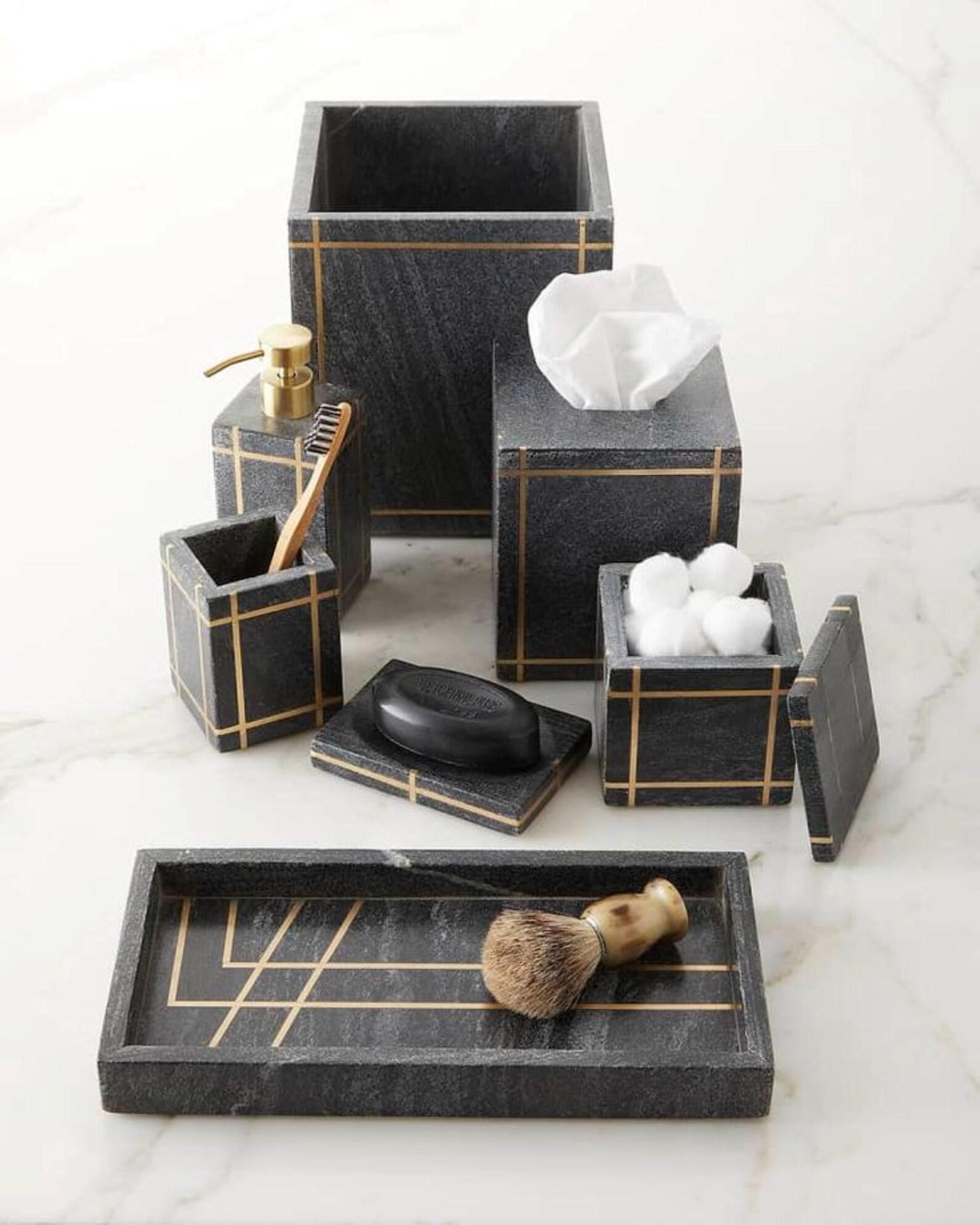 Elevate your bathroom with this luxury black stone bathroom accessory set, crafted to bring sleek, modern, and timeless elegance to your home. Featuring a rich charcoal stone finish accented with refined gold inlay lines, this set perfectly blends contemporary style with high-end sophistication.
