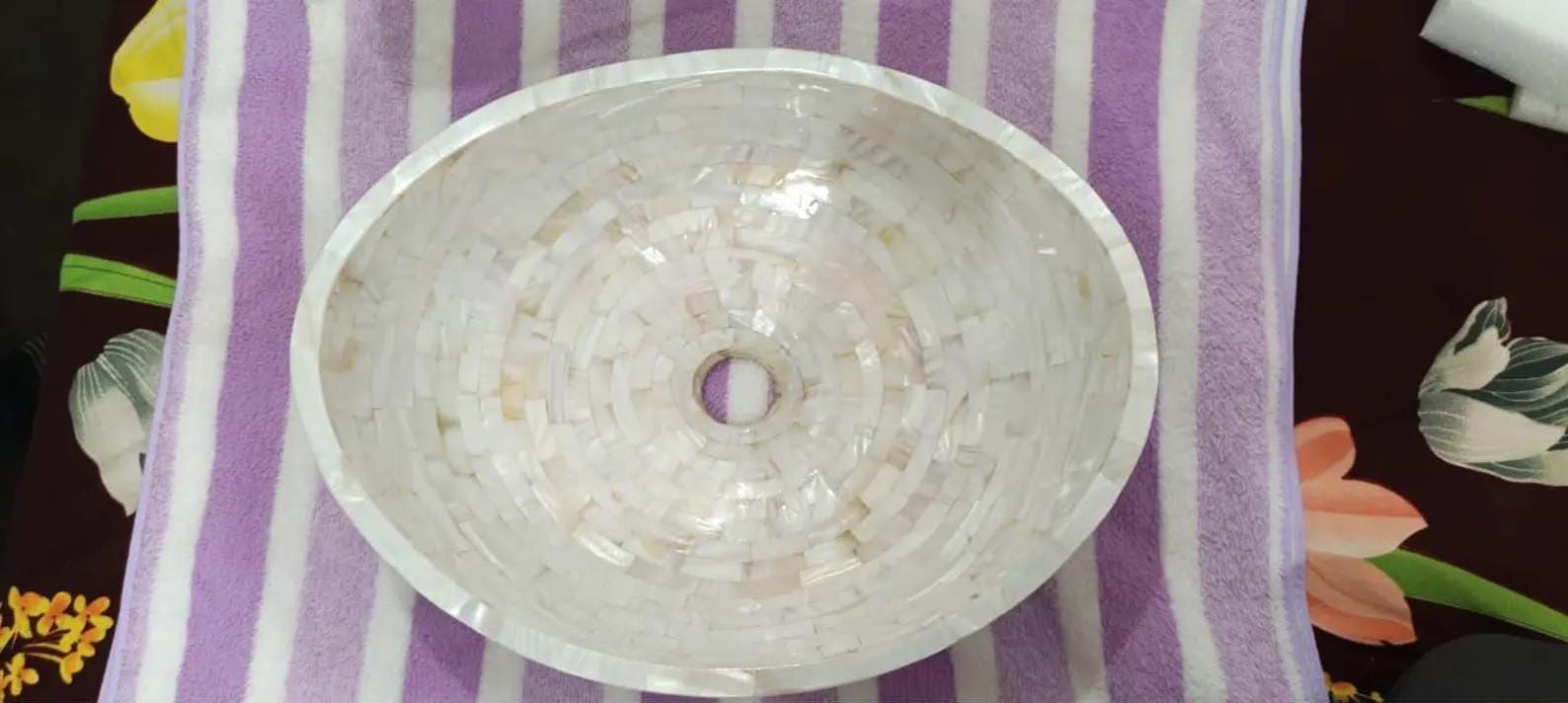 🌸 Luxurious Handmade Mother‑of‑Pearl Mosaic Sink Elevate your décor with this exquisite mosaic vessel sink (or decorative bowl), handcrafted from small square mother-of-pearl shell Stone. The result is a smooth, glossy, and waterproof surface showcasing a warm, iridescent shimmer that captivates any space.