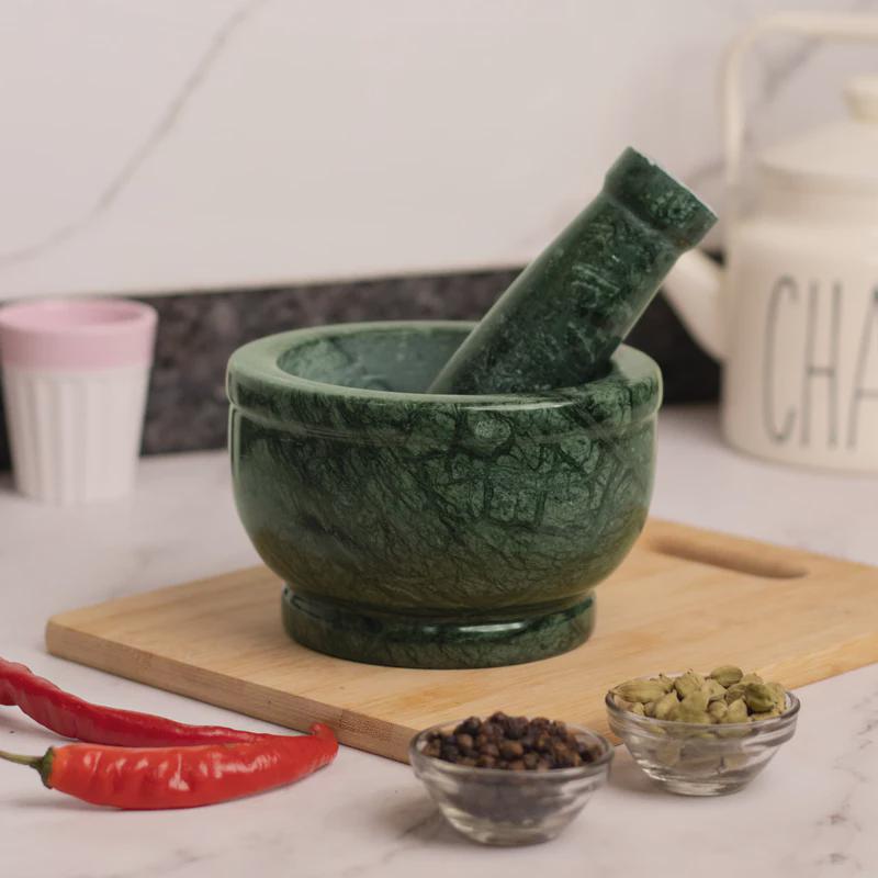 🥣 Handcrafted Green Marble Mortar & Pestle – Natural Stone Spice Grinder & Herb Crusher