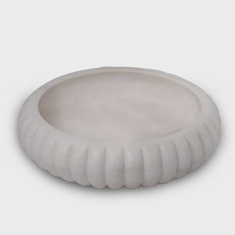 Handcrafted White Marble Urli Bowl – Natural Stone Decorative Centerpiece