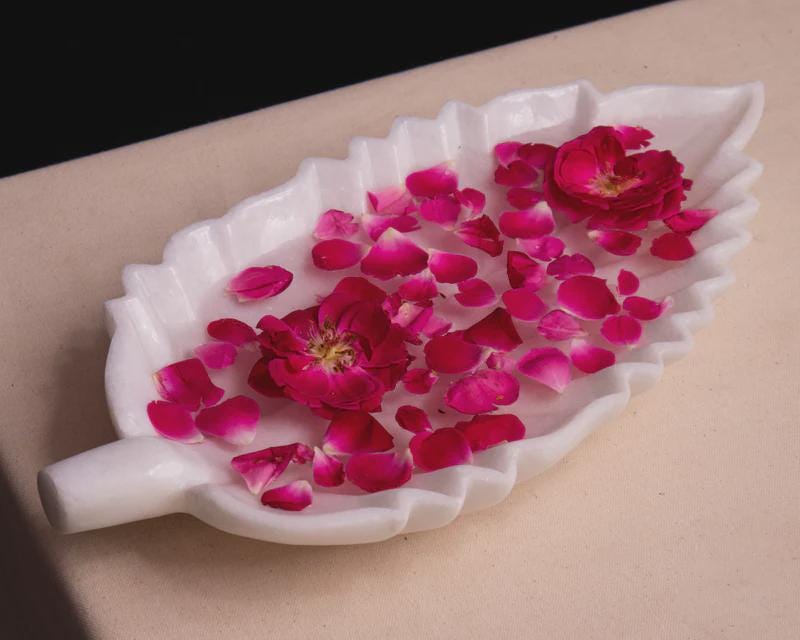 Add a touch of nature-inspired luxury to your home with this Handcrafted Marble Leaf Urli Bowl. Beautifully carved from premium natural marble stone, this leaf-shaped urli reflects timeless craftsmanship and elegant design, making it a perfect accent for both modern and traditional interiors.