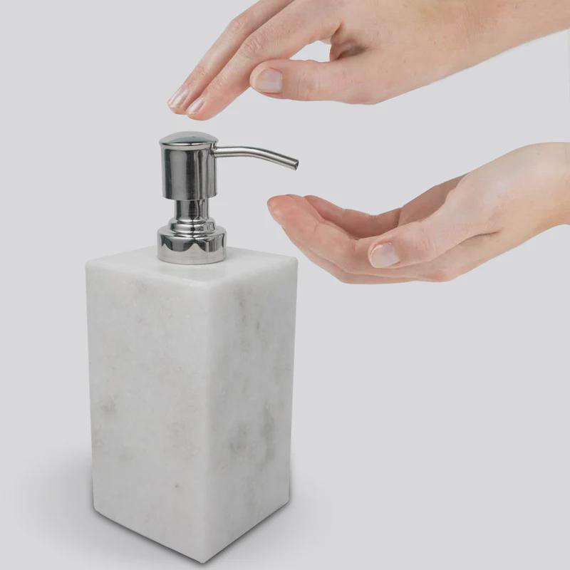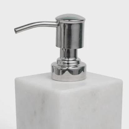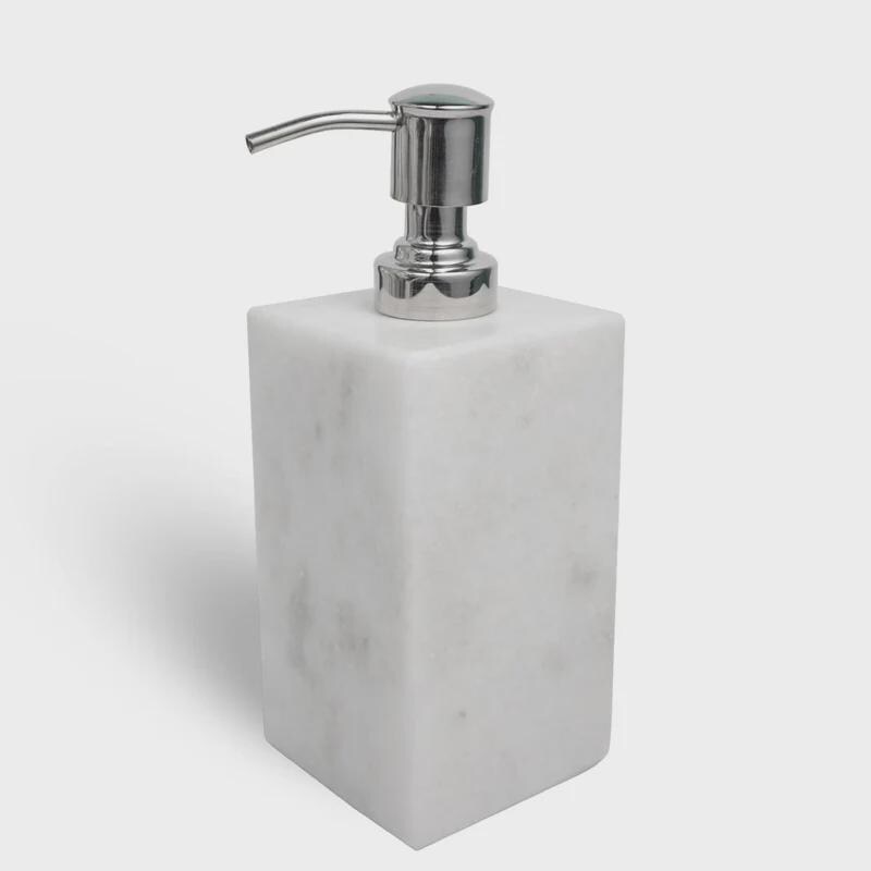 This white marble soap dispenser instantly adds sophistication and organization to any space.