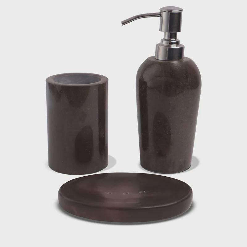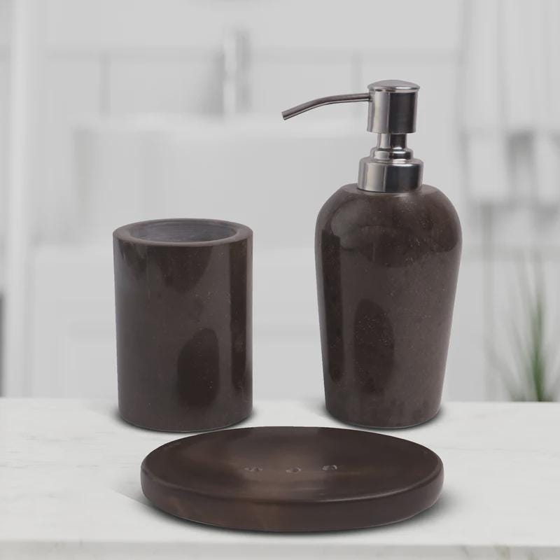 Introduce warmth and sophistication to your bathroom with this luxury Bronze marble bathroom accessories set, handcrafted from premium natural marble. Featuring deep bronze tones with elegant natural veining, this set brings a rich, hotel-style aesthetic to modern and classic interiors alike.
