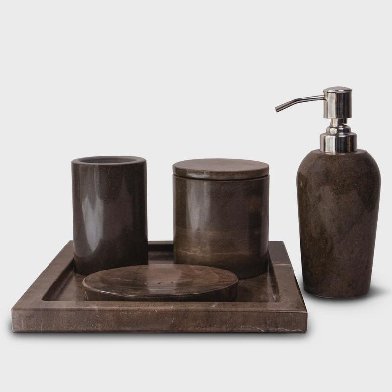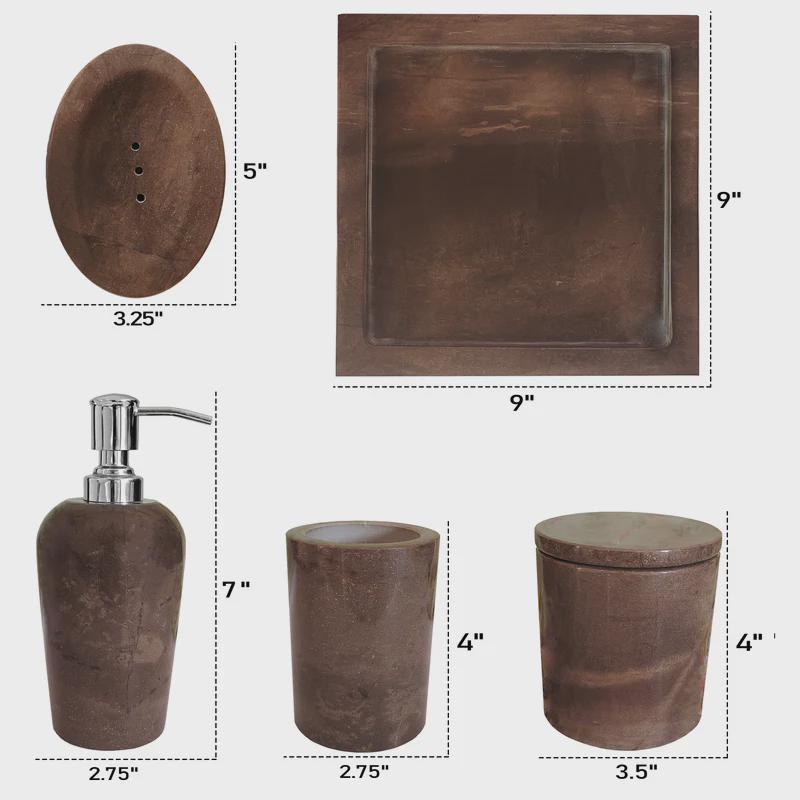 Transform your bathroom into a sanctuary of sophistication with this luxury Bronze marble bathroom set. Expertly handcrafted from premium natural marble, each piece boasts rich, warm bronze tones with elegant veining, creating a timeless, spa-inspired aesthetic that elevates any vanity.