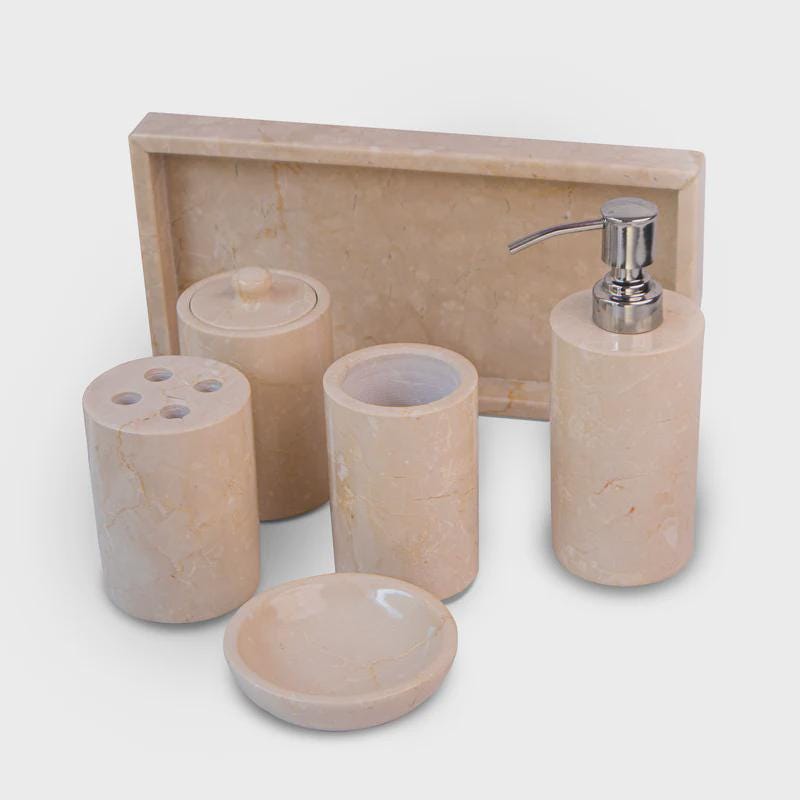 Luxury Bottochino Marble Bathroom Set – Handcrafted Natural Stone Vanity Accessories