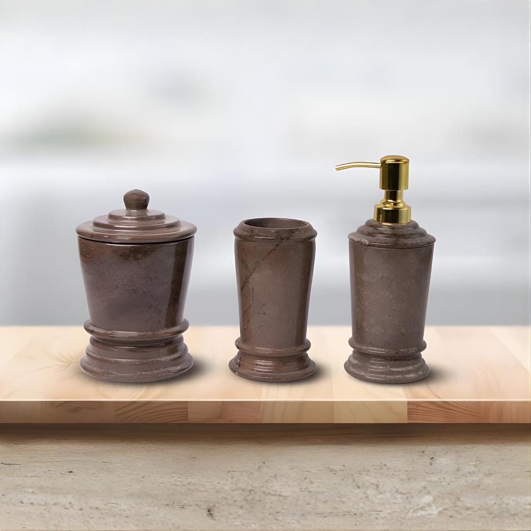 ✔ Made from 100% natural Bronze Armani marble ✔ Handcrafted by skilled artisans ✔ Heavy, durable, and long-lasting ✔ Unique veining — no two sets are exactly alike ✔ Adds a luxury spa and hotel-style feel ✔ Perfect blend of beauty and functionality
