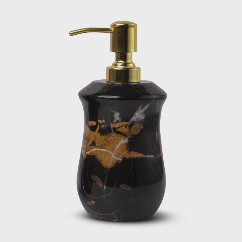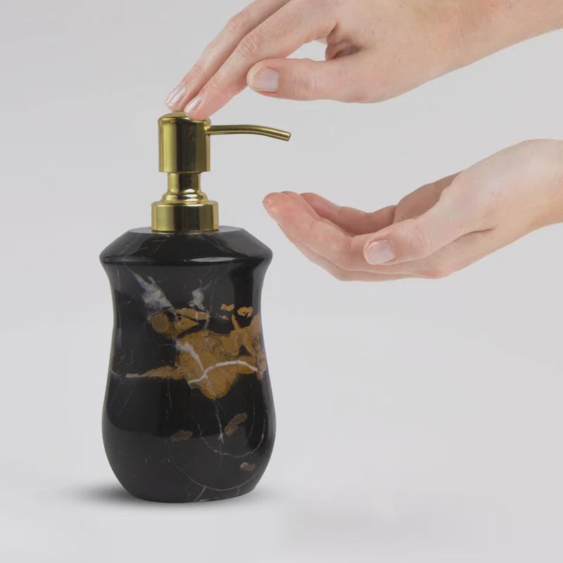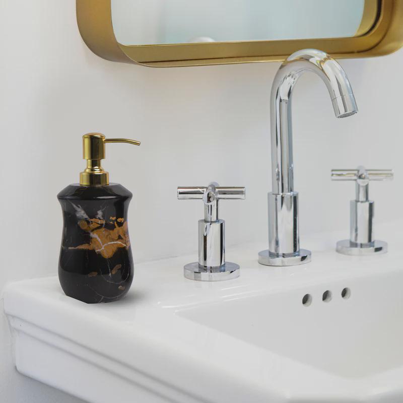 Luxury Black & Gold Marble Soap Lotion Dispenser — Handcrafted Natural Stone
