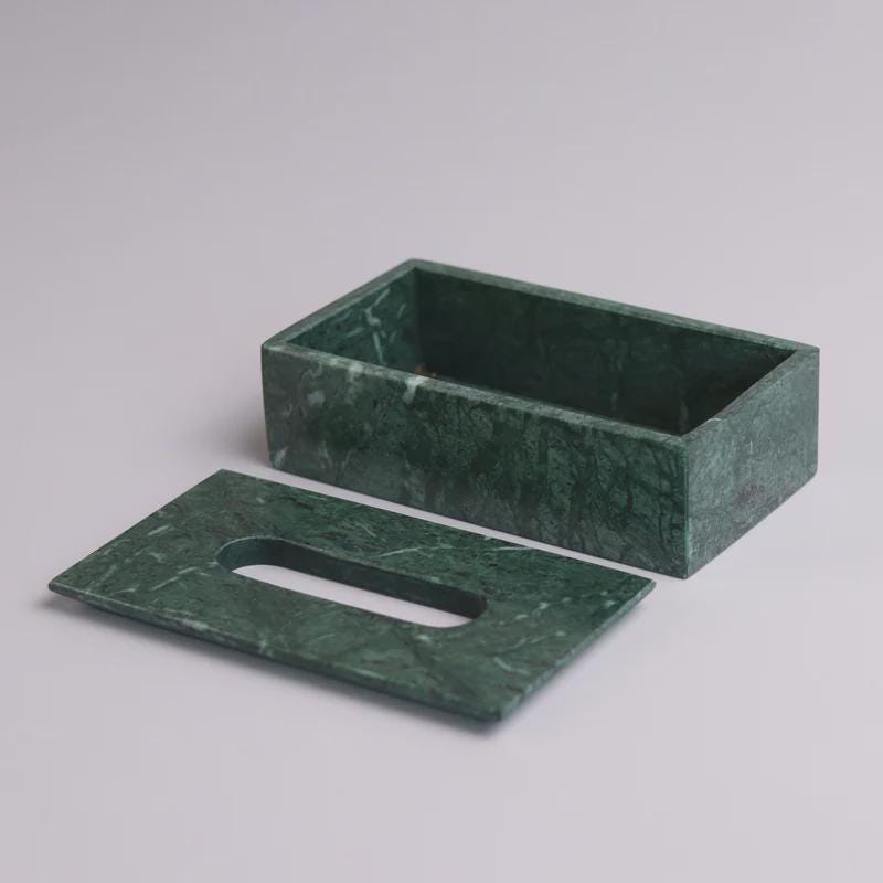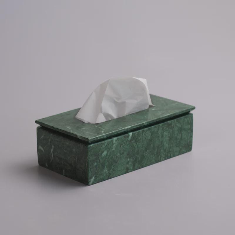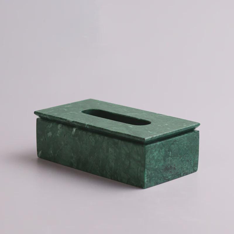 Green Marble Tissue Box – Handcrafted Stone Decor, Elegant Home Accessory, Functional Holder, Luxury Bathroom & Living Room Gift