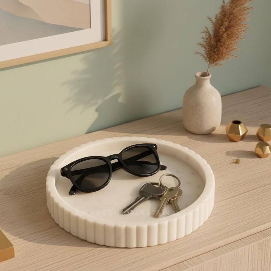 Transform your space with this Handcrafted White Marble Decorative Tray — a stunning blend of artisan craftsmanship and timeless design. This beautiful round tray brings effortless elegance to your home while offering versatile functionality.