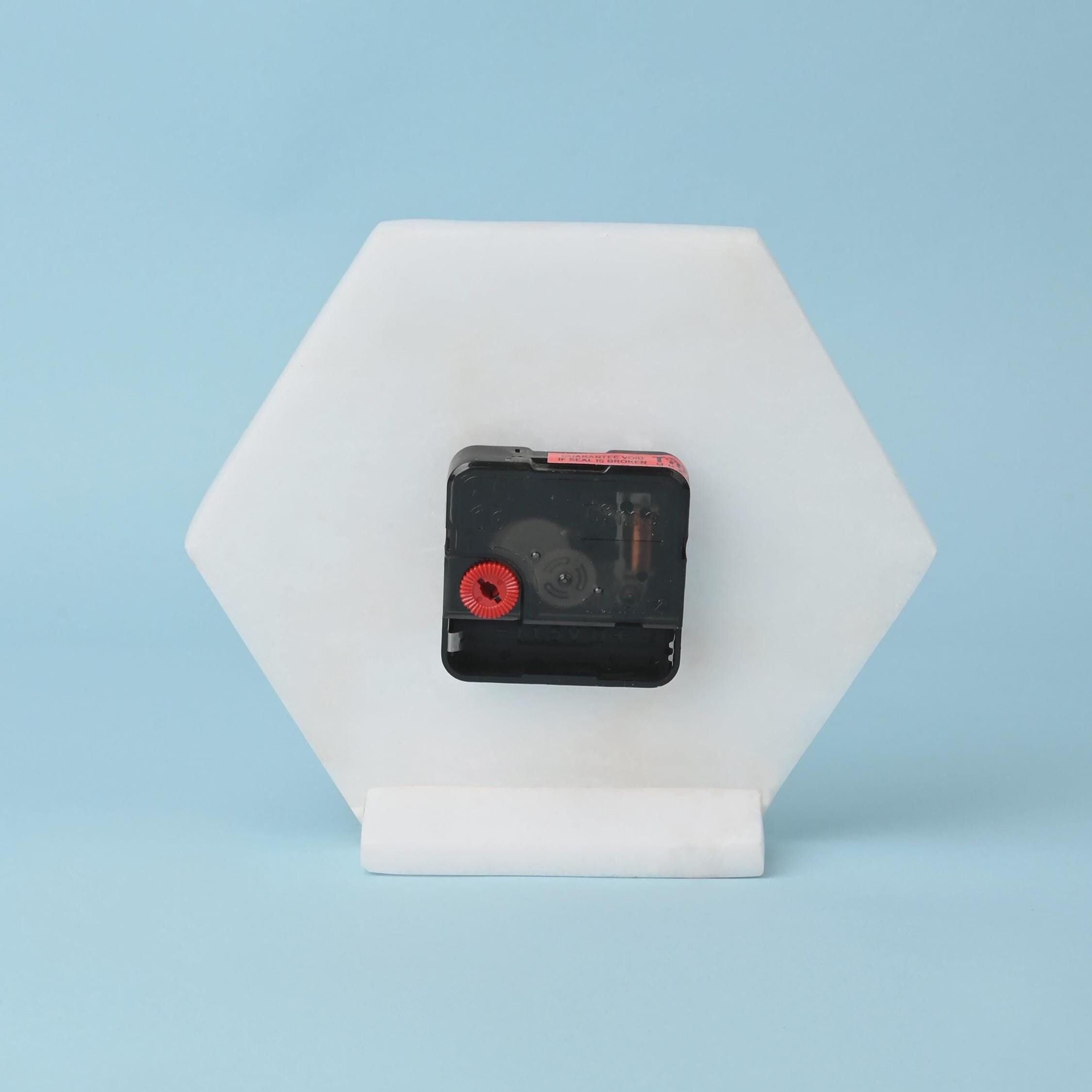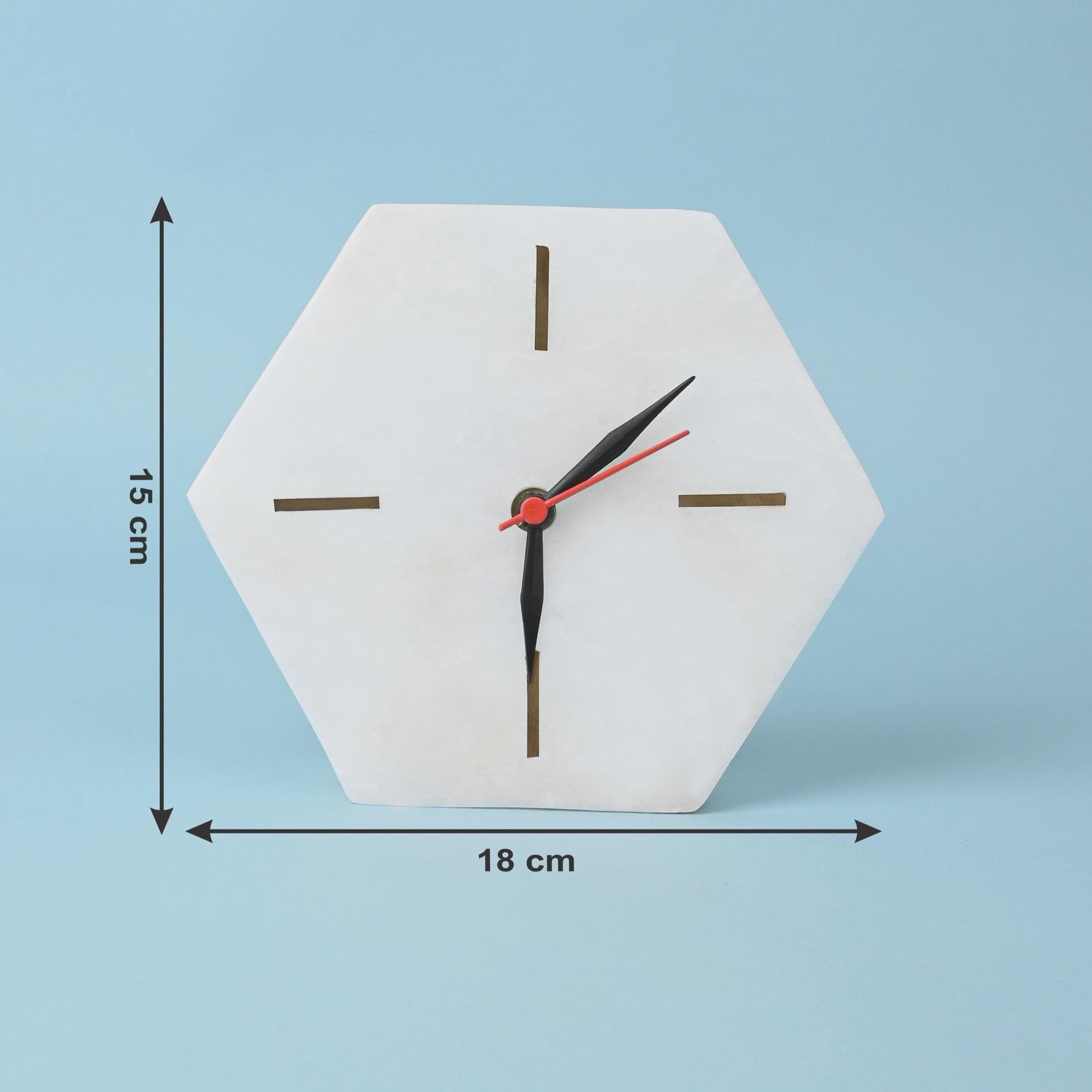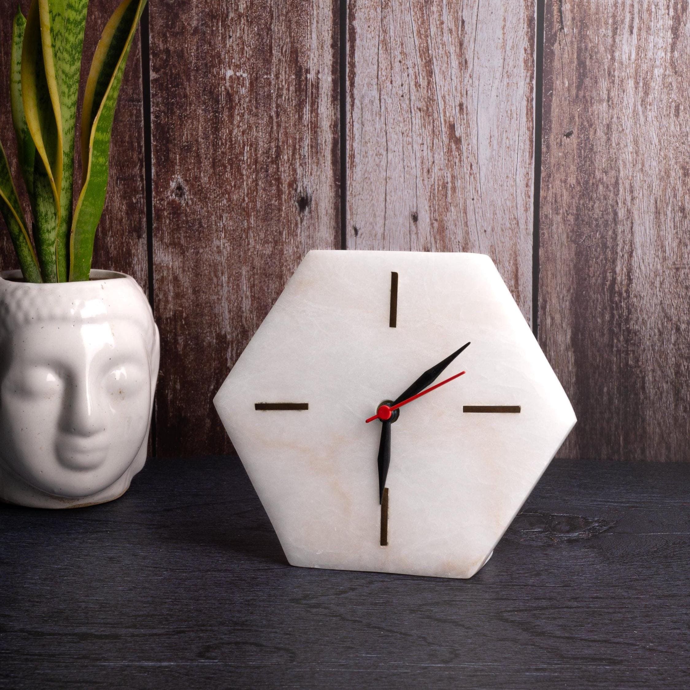 Handcrafted White Marble Hexagonal Table Clock – Elegant Desk & Home Décor Timepiece