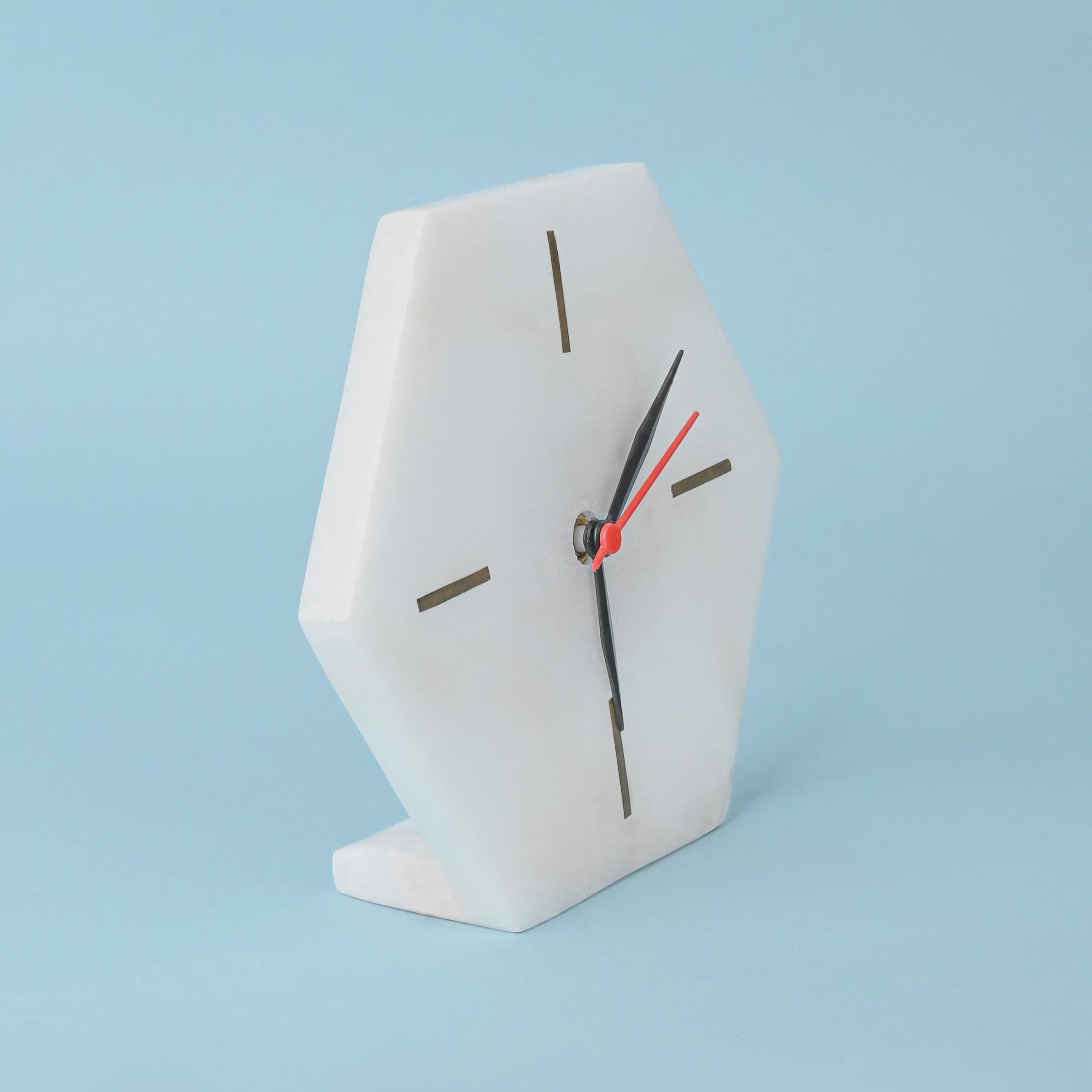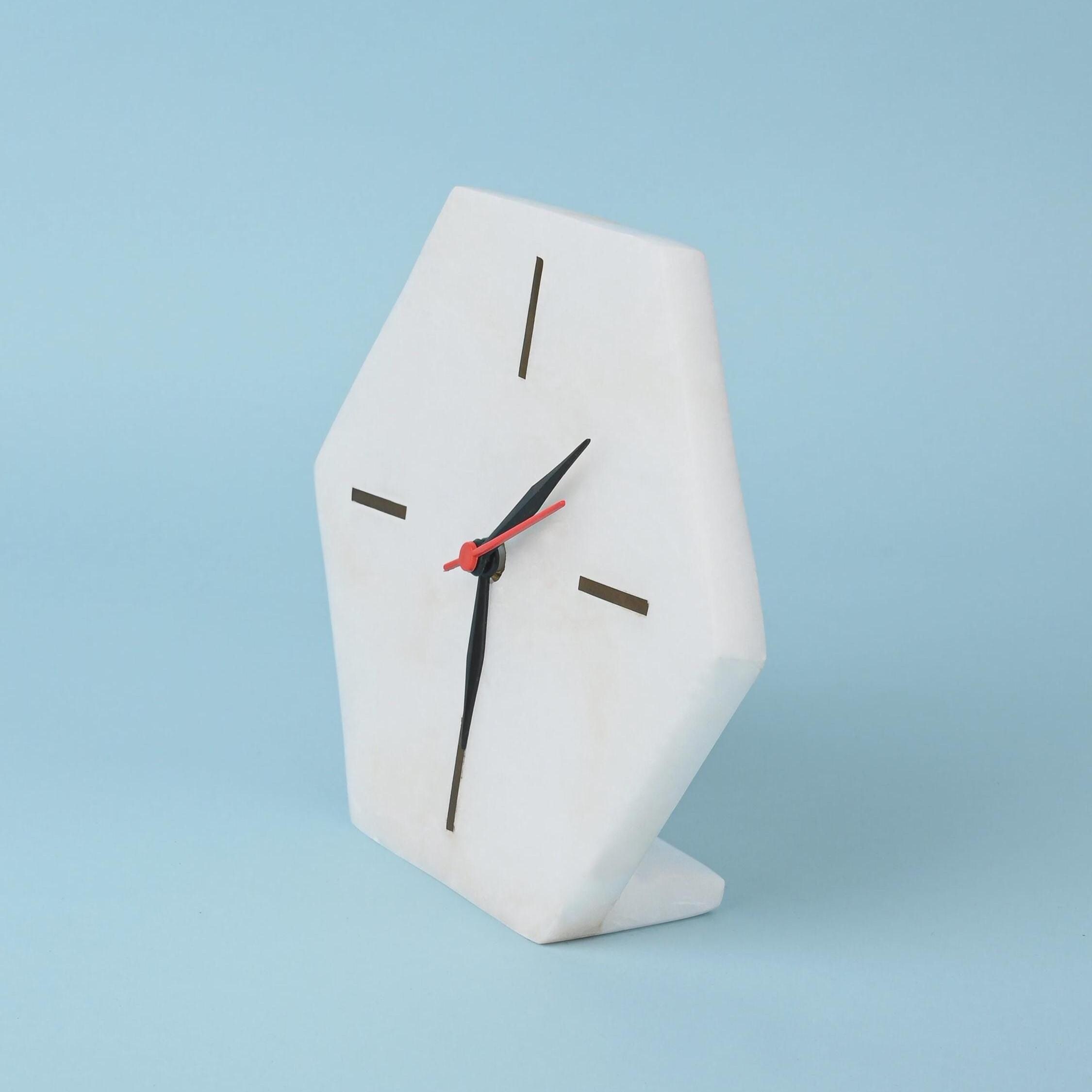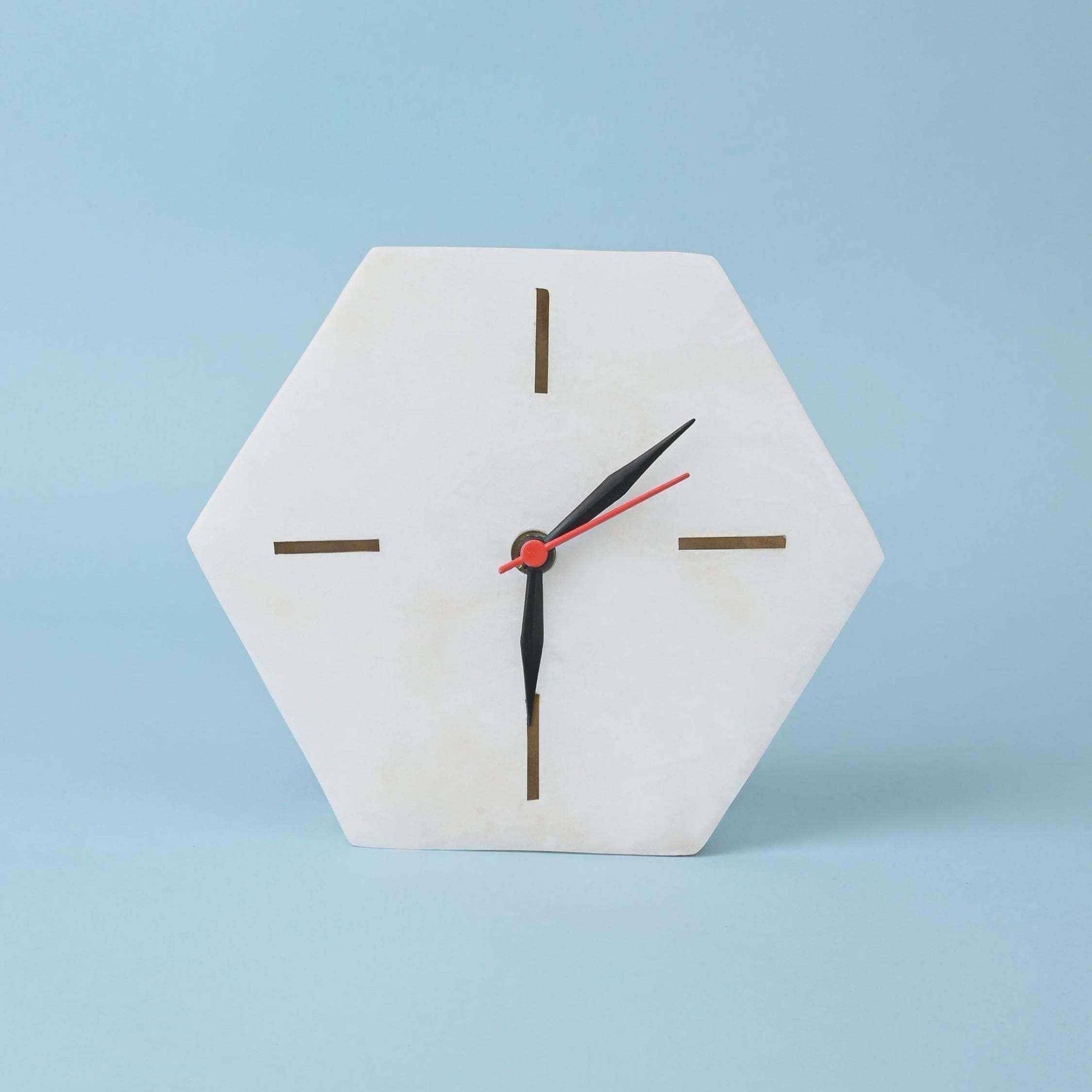 Handcrafted White Marble Hexagonal Table Clock – Elegant Desk & Home Décor Timepiece