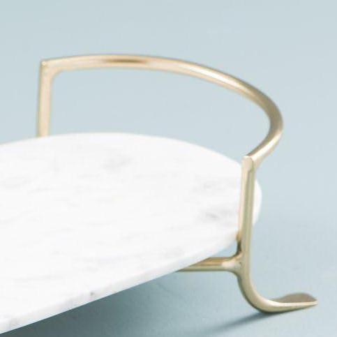Luxury White Faux Marble Decorative Tray with Gold Handles – Elegant Organizer & Décor Piece
