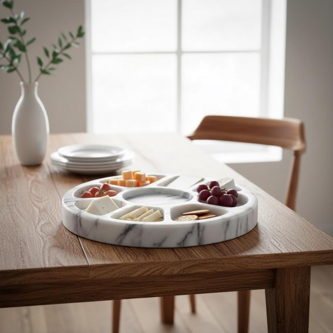 • Elegant Round Design – Ideal for cheese boards, appetizers, snacks, desserts, or pastries. GAURI KOHLI