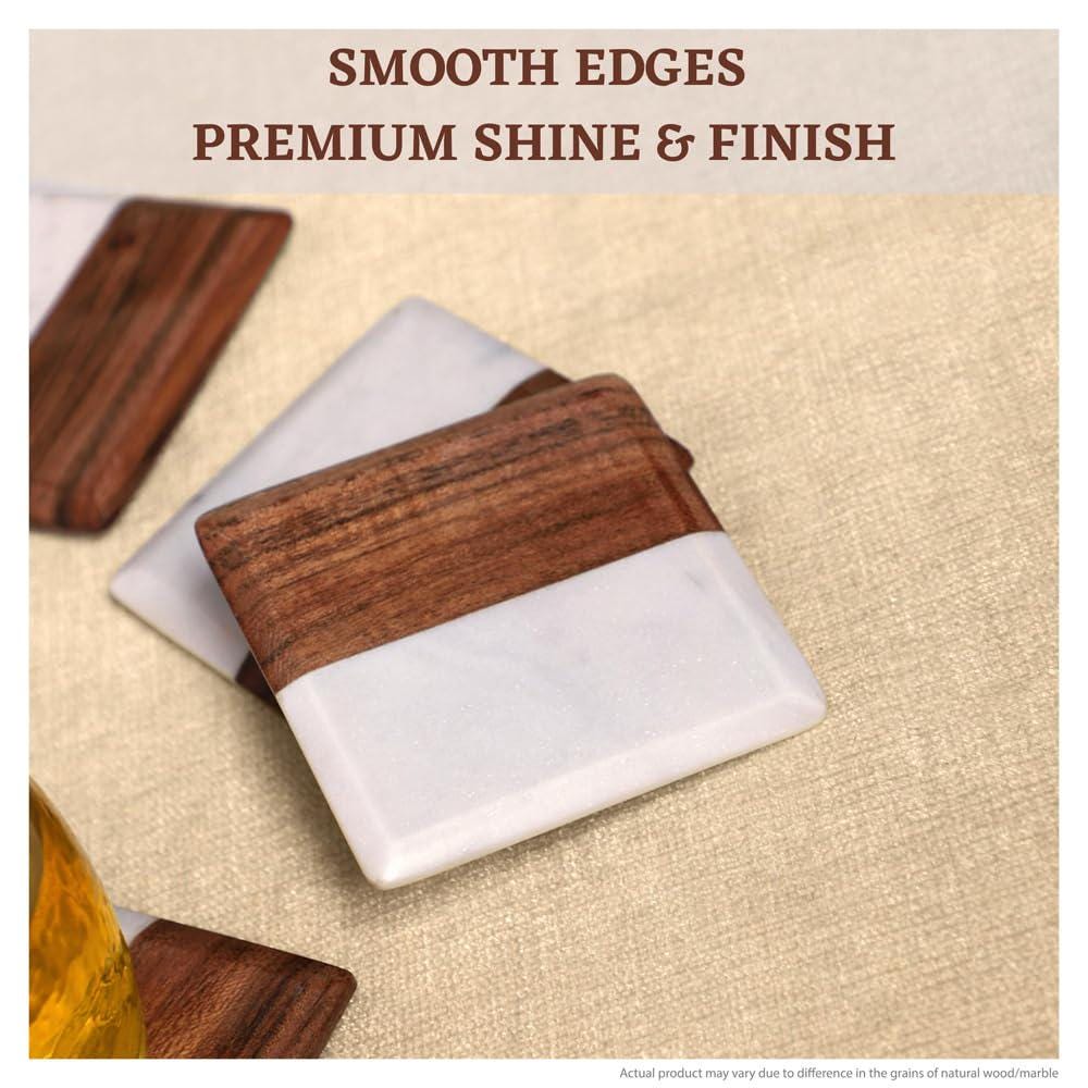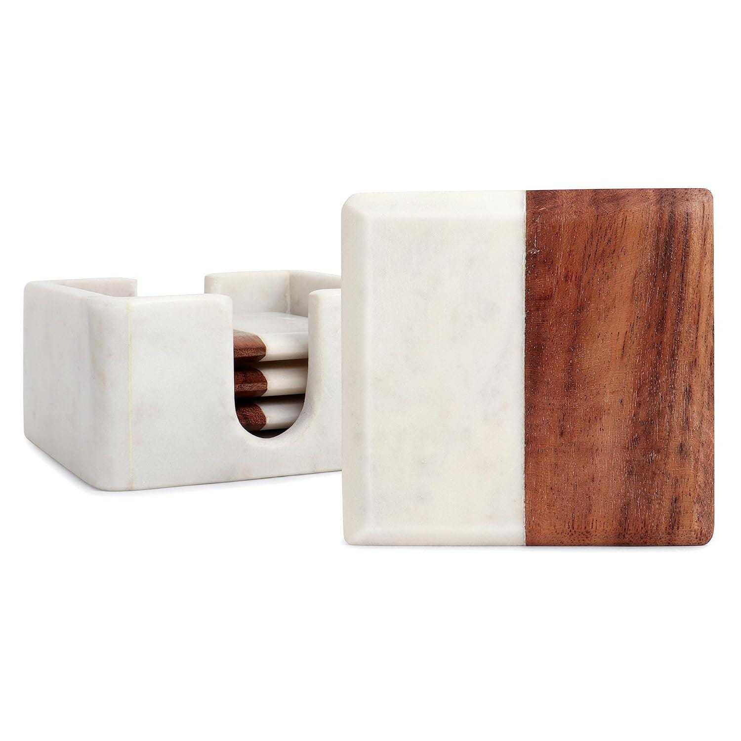 🏡 Elegant Home & Table Decor This coaster set isn’t just practical — it’s a decorative accent that enhances your living room, kitchen, dining room, or office space. The contrast of sleek white marble against the warm wood grain of the acacia holder adds timeless charm to everyday moments. Use them for coffee dates, dinner parties, or casual drinks without worrying about rings and marks on your furniture.
