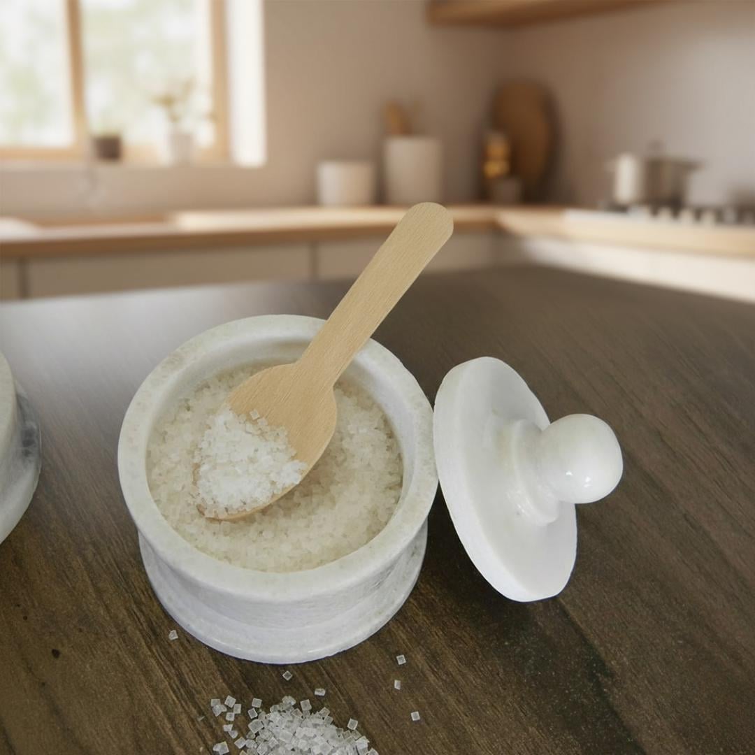 Upgrade your kitchen essentials with this Handcrafted White Marble Seasoning Container Set of 2, designed to combine everyday functionality with timeless elegance. This set includes two matching marble spice bowls with lids, perfect for storing salt, pepper, sugar, herbs, masalas, or your most-used condiments.