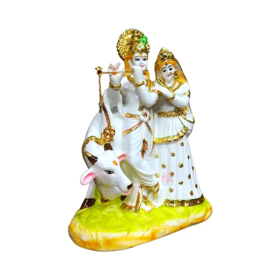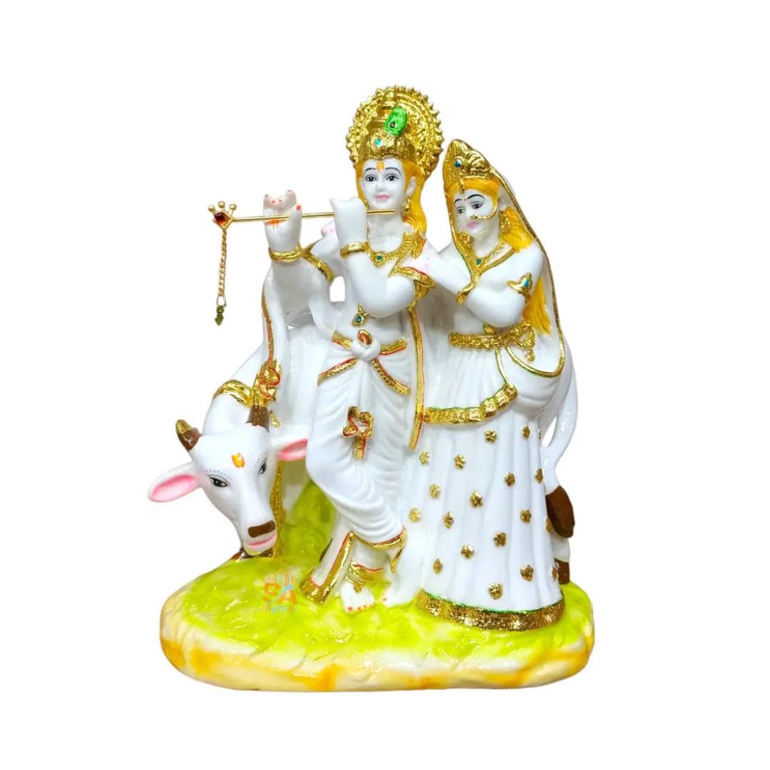 • Divine Symbolism: Represents eternal love, devotion, and unity — the heart of Radha and Krishna’s spiritual legacy. • Premium Marble Dust Craft: Smooth, durable, and finely detailed surface that captures every artistic curve. • Ideal Size: At approximately 23 cm, this statue is suited for home altars, shelves, desks, or living rooms. • Elegant Finish: Gorgeous accents and intricate detailing make it a standout decorative piece and devotional icon. • Perfect Gift: Meaningful choice for housewarmings, weddings, festivals like Janmashtami or Diwali, and spiritual gifting.