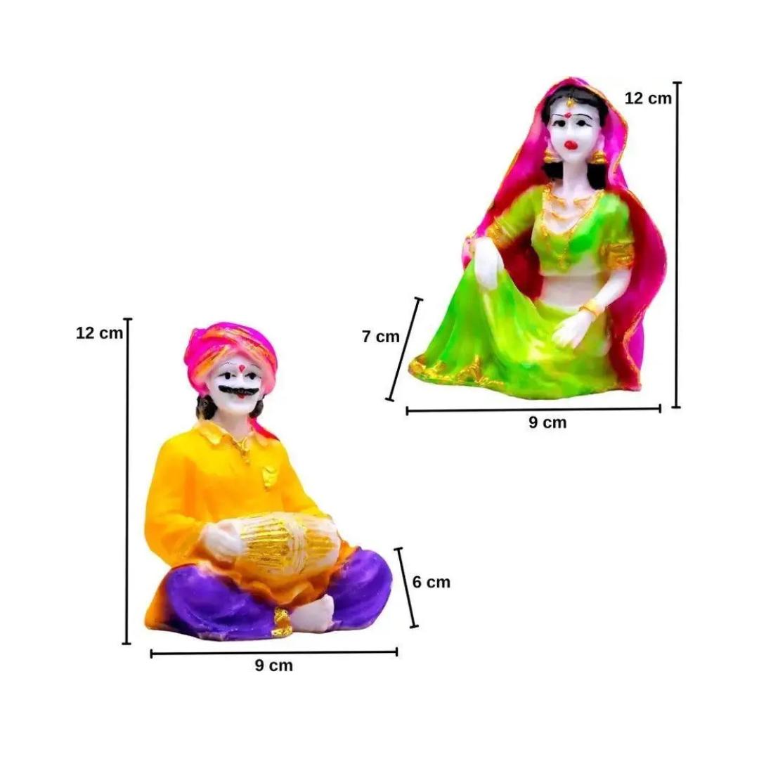 Each piece in this set shows a traditional Rajasthani musician playing folk instruments, reflecting the rhythmic soul and artistic spirit of Rajasthan. The 12–13 cm (approx) height makes them ideal for tabletops, bookshelves, office desks, or display cabinets without taking up too much space.