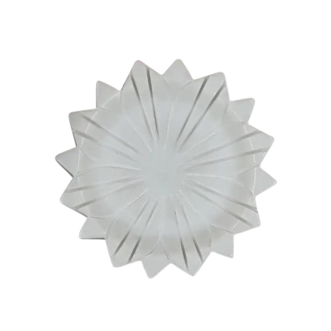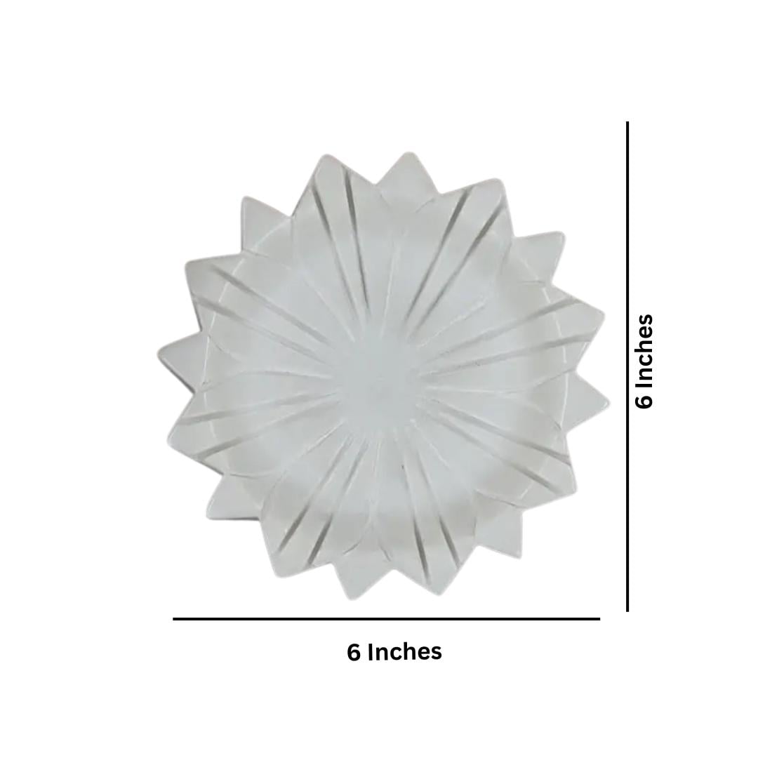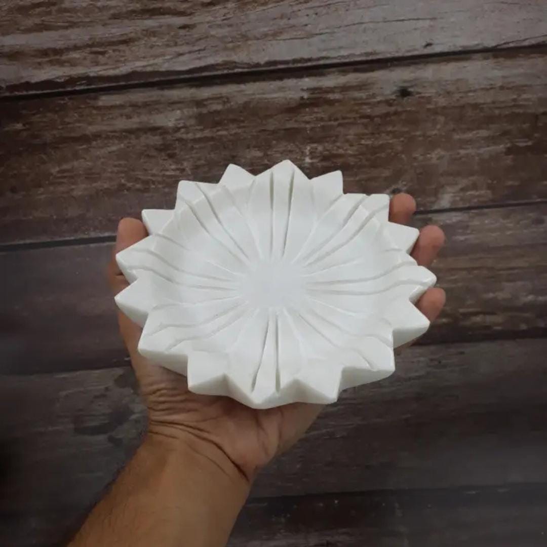 Each bowl is meticulously crafted from solid white marble, shaped into a delicate lotus flower design — symbolizing purity, peace, and spiritual calm. The smooth, polished finish highlights the natural veins of the stone, creating a stunning accent for your living room, entryway, meditation corner, or pooja area.